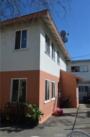 The structure was built in 1954 and features a pitched composite roof and slab foundation with separately metered gas and electric. Master metered water, house lights and laundry. It is gated front and back, not locking, and features a large patio area along three sides of the property. Landscaping is minimal and low maintenance. Unit interior fit and finish varies with unit number three being the only one with granite counters and updated flooring. Condition and type of plumbing is unknown at the time of publication. Age of roof is also unknown.