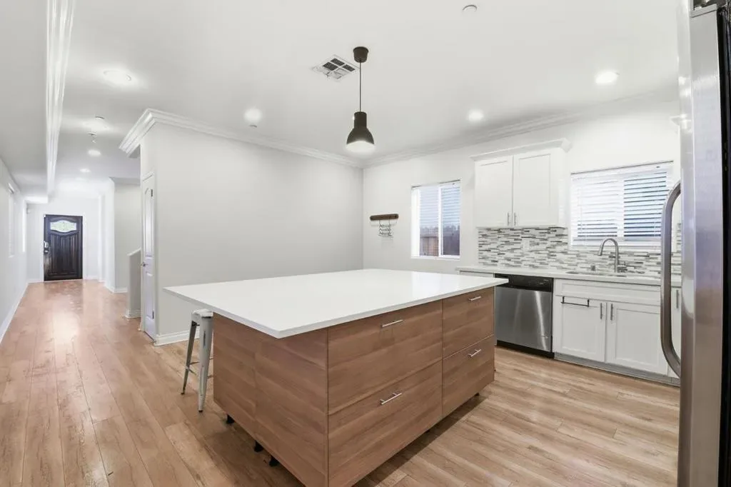 Recently constructed and thoughtfully appointed, this 4-bedroom, 4-bath, 2 story home in North Hollywood reflects the advantages of modern design and updated systems. Its relatively new build offers a refined setting with the assurance that comes from contemporary construction. The main living area unfolds with a sense of openness, enhanced by wide-plank flooring and recessed lighting. The kitchen is elegantly composed around a substantial center island, complemented by generous cabinetry, stainless steel appliances, and a window above the sink. In-home laundry is discreetly integrated, adding practical convenience to the homes daily rhythm. Four well-proportioned bedrooms provide comfortable separation and flexibility. Two bedrooms enjoy direct access to a balcony, extending the interior footprint outward. Four full baths accommodate a variety of living arrangements with ease. Up to 5 pets are permitted. Situated in North Hollywood, the location places you near NoHo Wests retail and dining options, Valley Plaza Parks green space, and the established corridor along Lankershim Boulevard. Ralphs and Trader Joes are close at hand for everyday provisions, while access to the 170 and 101 freeways supports efficient travel throughout Los Angeles.