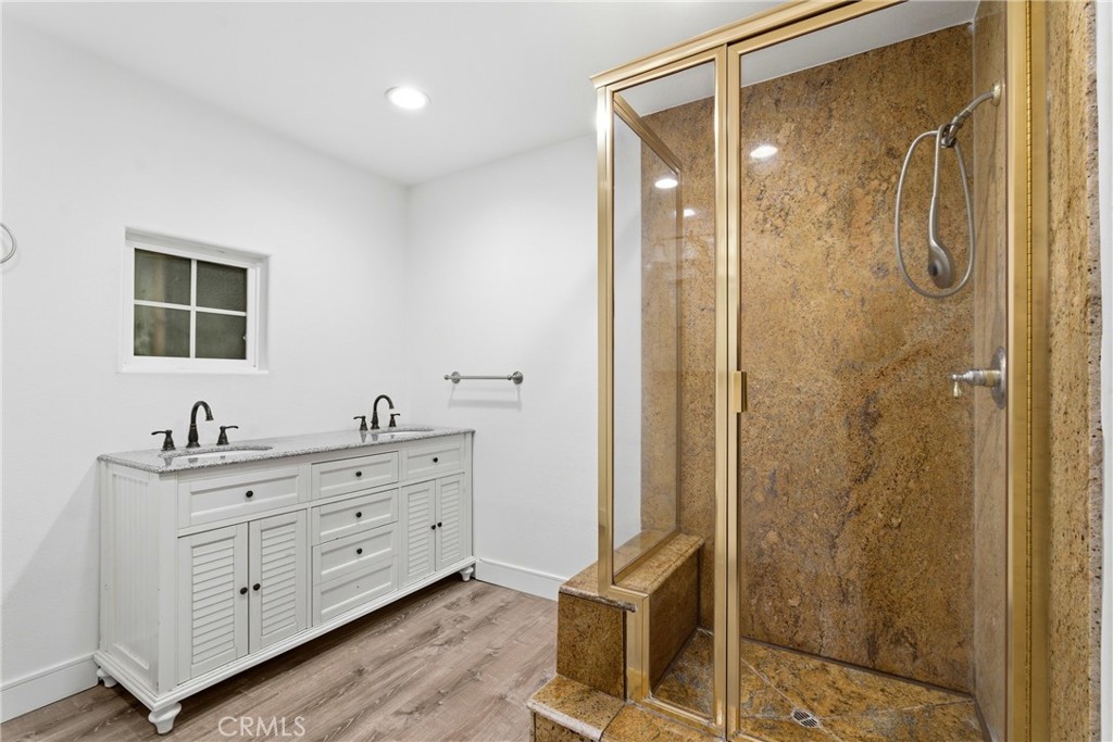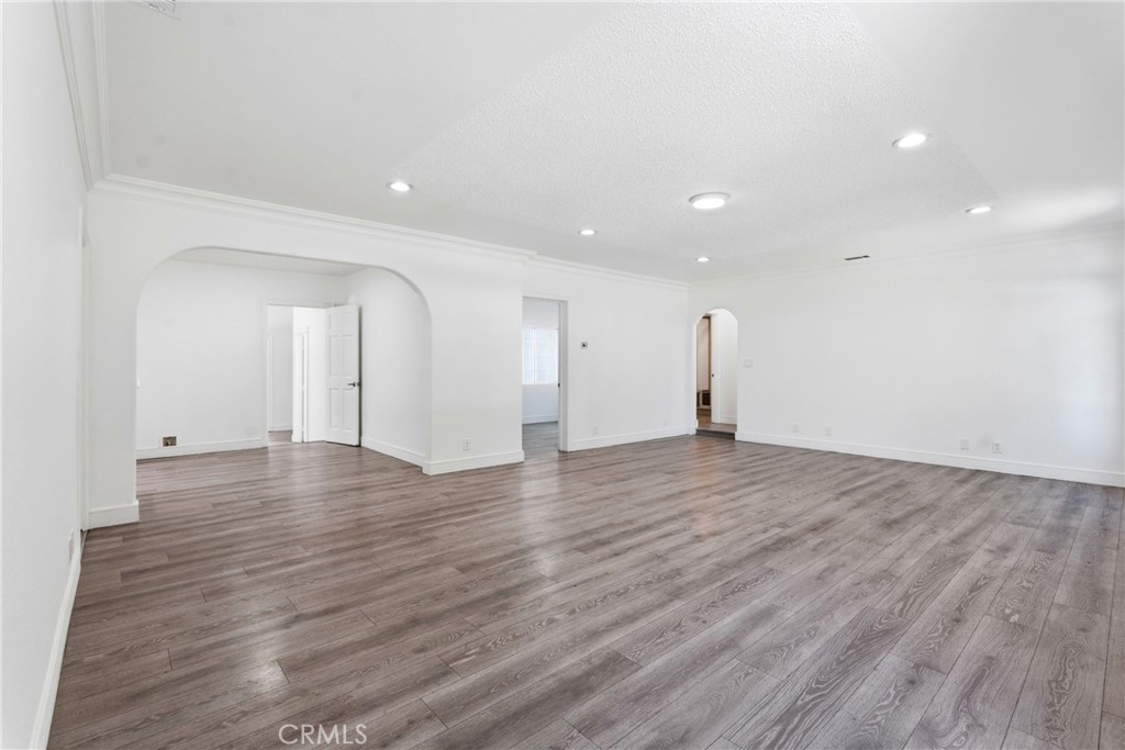 The property also features a brand-new two-story ADU (Accessory Dwelling Unit) with approximately 1,200 sq. ft., its own address, and a rare 2-car attached garage. Designed with modern living in mind, the ADU includes 3 bedrooms and 2.5 bathrooms with all bedrooms located on the second floor. The interior showcases high ceilings, recessed LED lighting, brand-new dual-pane windows, laminate flooring, central air and heat, and stylish custom finishes throughout. The beautifully designed kitchen offers quartz countertops, stainless steel appliances, range stove, and dishwasher, all opening seamlessly to the main living area. The primary suite features a spacious walk-in closet, private bathroom, and access to a large balcony, creating a comfortable retreat. A separate laundry area with washer and dryer is also conveniently located upstairs. Adding even more value, the property includes an approximately 495 sq. ft. newly constructed recreational room with its own private bedroom and bathroom, offering excellent potential to convert into a Junior ADU. With its separate entrance and private backyard space, it provides flexibility for extended family, guests, or additional rental income. With three separate living spaces, modern new construction, and a large lot in a prime North Hollywood location, this property offers incredible versatility for multi-generational living, owner-users, or investors seeking strong rental potential. Don’t miss this rare opportunity to own a truly unique property in one of the Valley’s most vibrant communities!