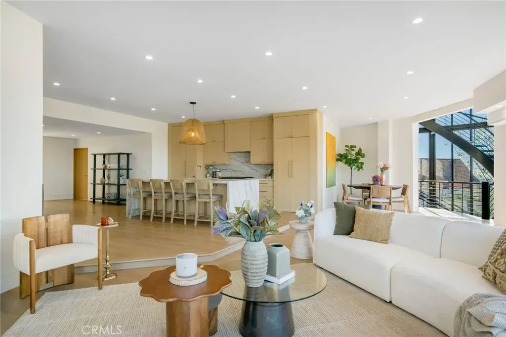 The primary suite occupies its own private level, delivering a true resort experience. Step onto a 1,200-sq-ft view deck with spa-style hot tub, travertine firepit, and lounge areas overlooking ocean, city, and sunset views. Inside, the suite includes floor-to-ceiling sliding glass doors, a dedicated office, and a spa-inspired bath with dual vanities, heated floors, and a freestanding soaking tub. The custom walk-in closet features its own washer/dryer combo and LG clothing steamer. A coffee bar and beverage fridge complete this exceptional retreat.