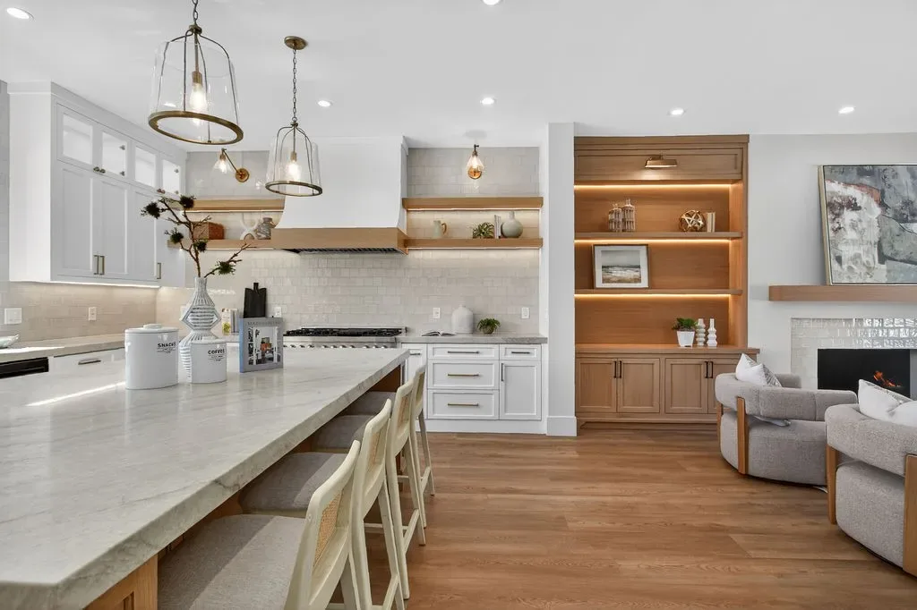 Experience elevated California living in this completely rebuilt North Tustin showpiece, completed in 2026, where timeless architecture meets uncompromising modern luxury. Situated on an expansive .46-acre lot in a highly desirable neighborhood with the ability to walk to award-winning Tustin schools, this extraordinary home offers 8 bedrooms and 7.5 bathrooms across more than 5,000 square feet, including a 6-bedroom, 5.5-bath main residence (3,840 sq. ft.) and a seamlessly integrated 2-bedroom, 2-bath attached ADU (1,198 sq. ft.), with each bedroom featuring its own attached bathroom. Thoughtfully designed for today’s lifestyle, the home showcases a striking contemporary farmhouse exterior with smooth white stucco, stone accents, bold black-framed windows, and a welcoming covered entry that sets the tone for the exceptional quality and custom craftsmanship found throughout. Inside, wide-plank flooring and an airy open-concept layout create a refined yet inviting ambiance, showcasing superior quality and high-end finishes throughout. The chef’s kitchen is a true centerpiece, featuring custom cabinetry, a custom-designed range hood, quartz countertops, an oversized island, a professional-grade stainless steel range, farmhouse sink, designer tile backsplash, and curated lighting. It flows seamlessly into the expansive family room with a sleek fireplace, illuminated built-ins, and walls of glass opening to the backyard. The home also offers laundry accommodations in both the primary closet and the upstairs laundry room for added convenience. The resort-caliber backyard is completely brand new, with every element constructed in 2026. This includes a newly built pool and elevated spa with stacked-stone detailing, a custom cabana structure with vaulted wood-beam ceilings, built-in BBQ and bar seating, and all-new landscaping surrounding generous lawn space for privacy and effortless entertaining. The attached ADU offers exceptional flexibility while maintaining privacy and cohesion with the main residence, ideal for multigenerational living, extended guests, a private office retreat, or income potential. A three-car garage, oversized driveway, and designer finishes throughout complete this turnkey North Tustin estate that truly lives like brand-new construction inside and out.