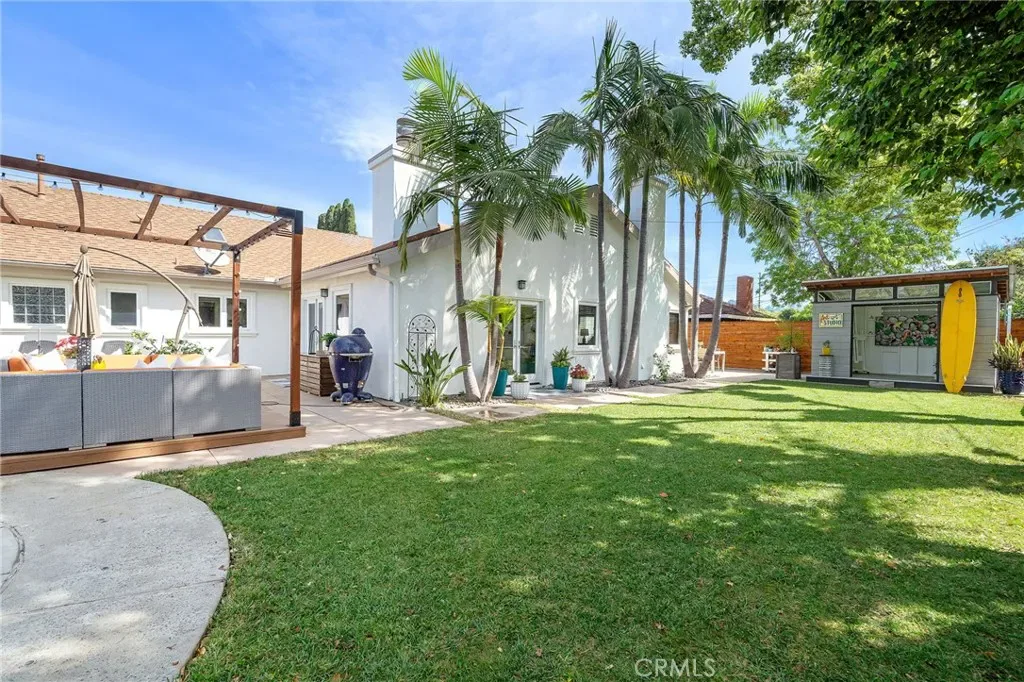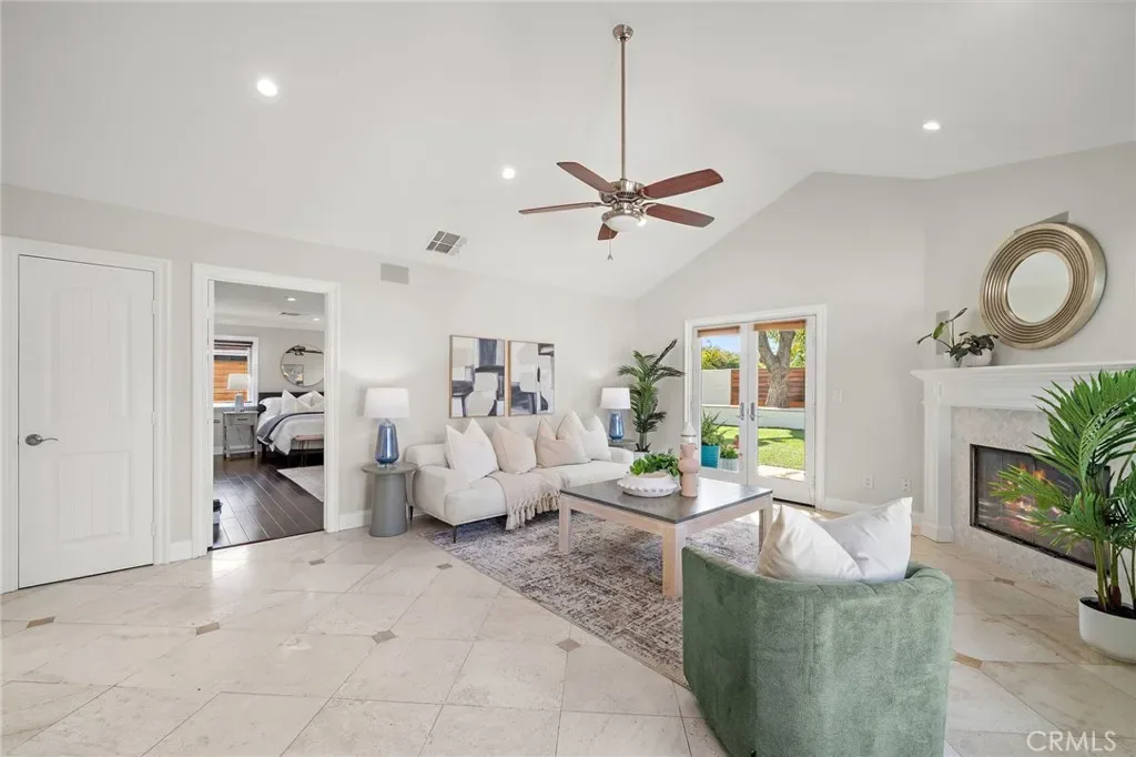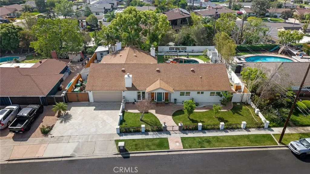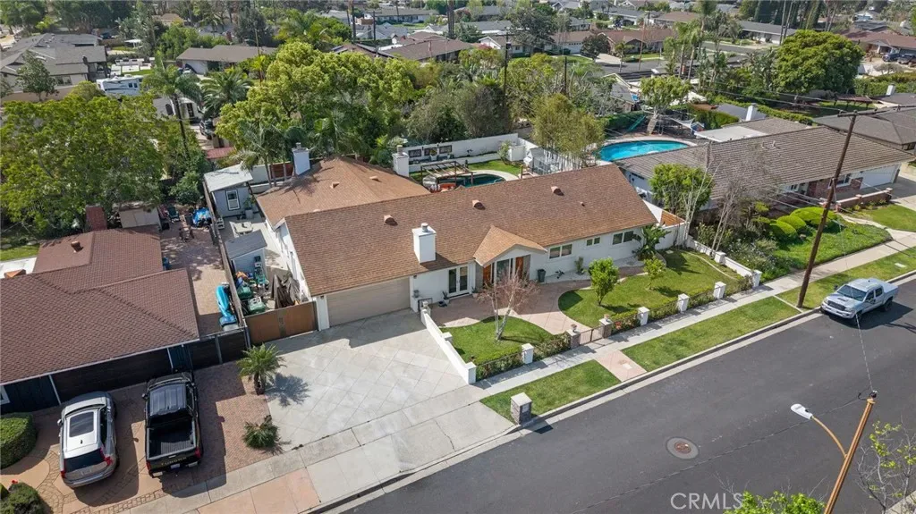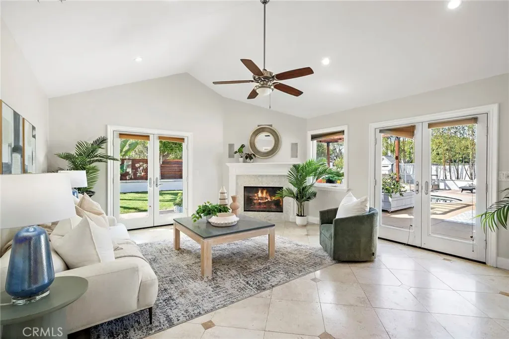 Welcome to effortless California living in the heart of North Tustin, found at 18642 Silver Maple. This tastefully upgraded single-story pool home features myriad upgrades and accoutrements adorning over 2,500 square feet of bright, open living space. Enter the Dutch door and be immediately impressed by what this home has to offer. With 4 bedrooms, 3 bathrooms, and a highly desirable dual primary suite floorplan—perfect for multi-generational living or hosting guests in comfort. The rooms are spacious, bathrooms upgraded, and options endless. Vaulted, open-beamed ceilings enhance the upgraded kitchen, featuring modern appliances and contemporary quartz cabinets as it provides a bright, open feel. Anchoring the home’s central living space, the kitchen flows naturally between the living and family rooms, with a dining area complete with cabinetry and comfort over travertine floors. The family room is a light-filled sanctuary, designed for easy everyday living and entertaining. Three fireplaces throughout the home create inviting spaces to gather and unwind during cooler evenings. Step outside to a backyard designed for year-round enjoyment. The upgraded freeform pool, tropical bamboo and palm landscaping, and multiple outdoor living areas create a private resort-like atmosphere. A grassy lawn next to the pool lends to play, relaxation, or outdoor gatherings under the Southern California sun. Additional highlights include RV parking, art studio/office/yoga room, an outdoor shower for post-swim convenience, and plenty of room to garden, entertain, or simply enjoy the peaceful surroundings. Ideally located within walking distance to excellent schools, close to shopping, dining, and major Orange County destinations while still offering a tranquil residential setting, this North Tustin retreat delivers the perfect balance of comfort, space, and lifestyle.