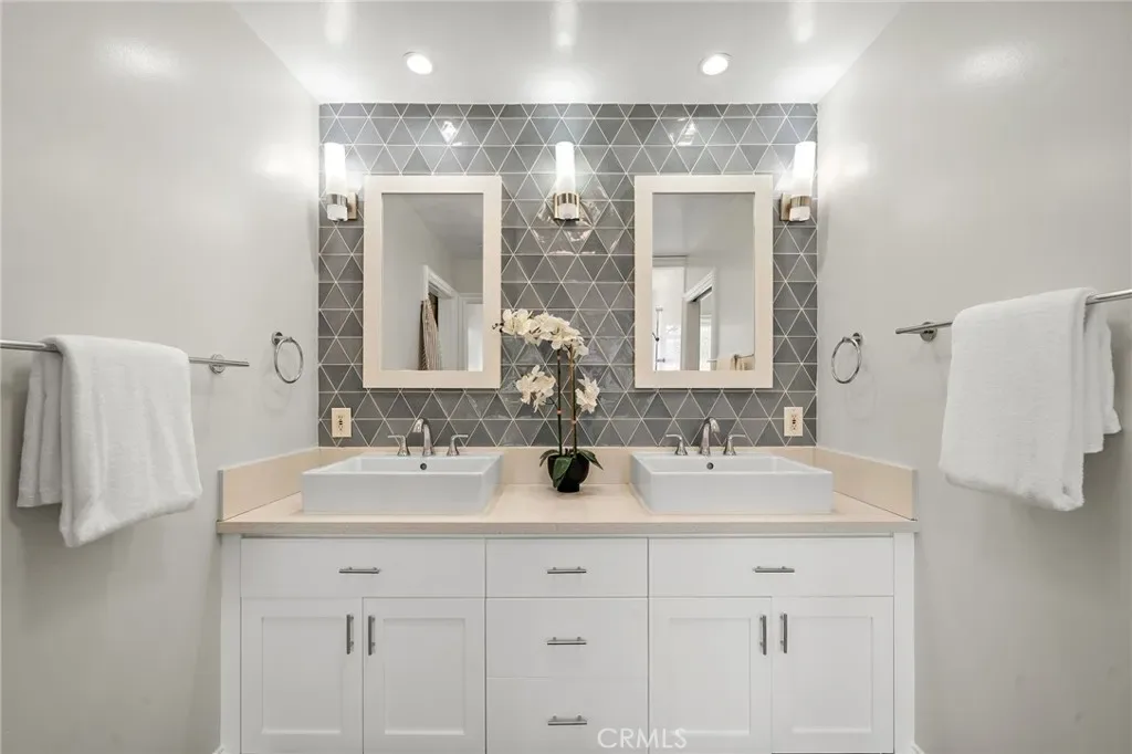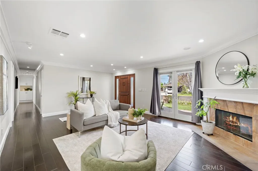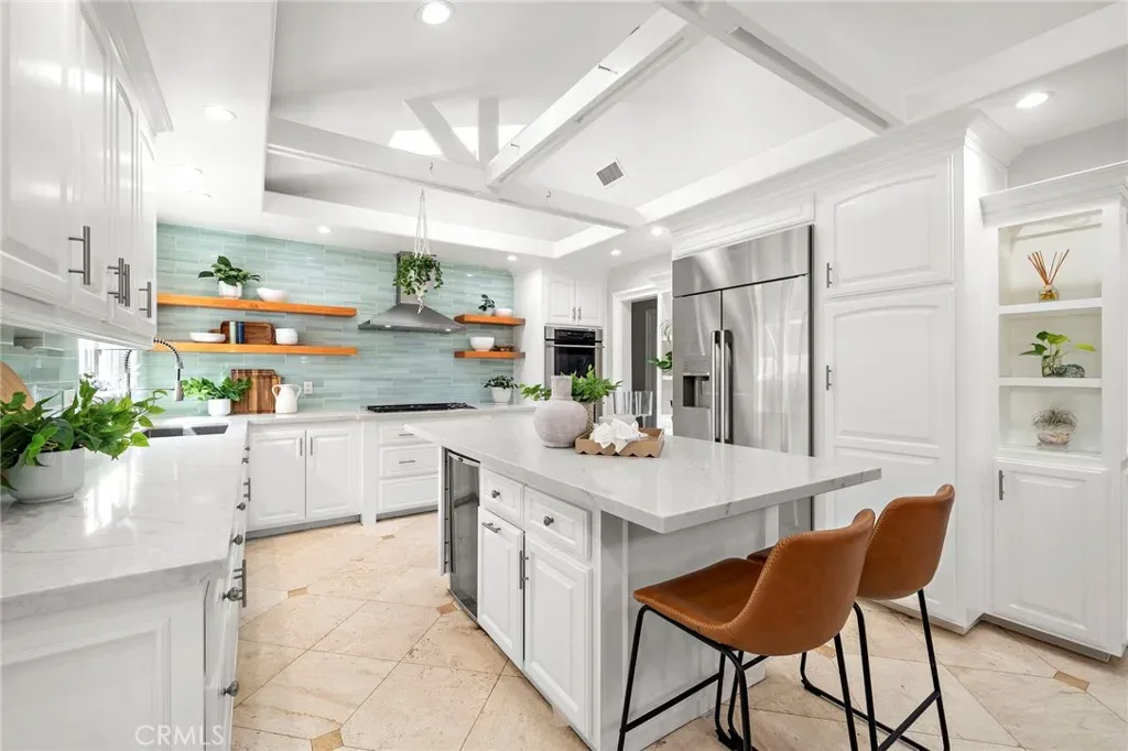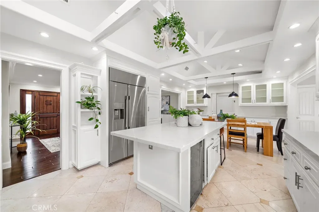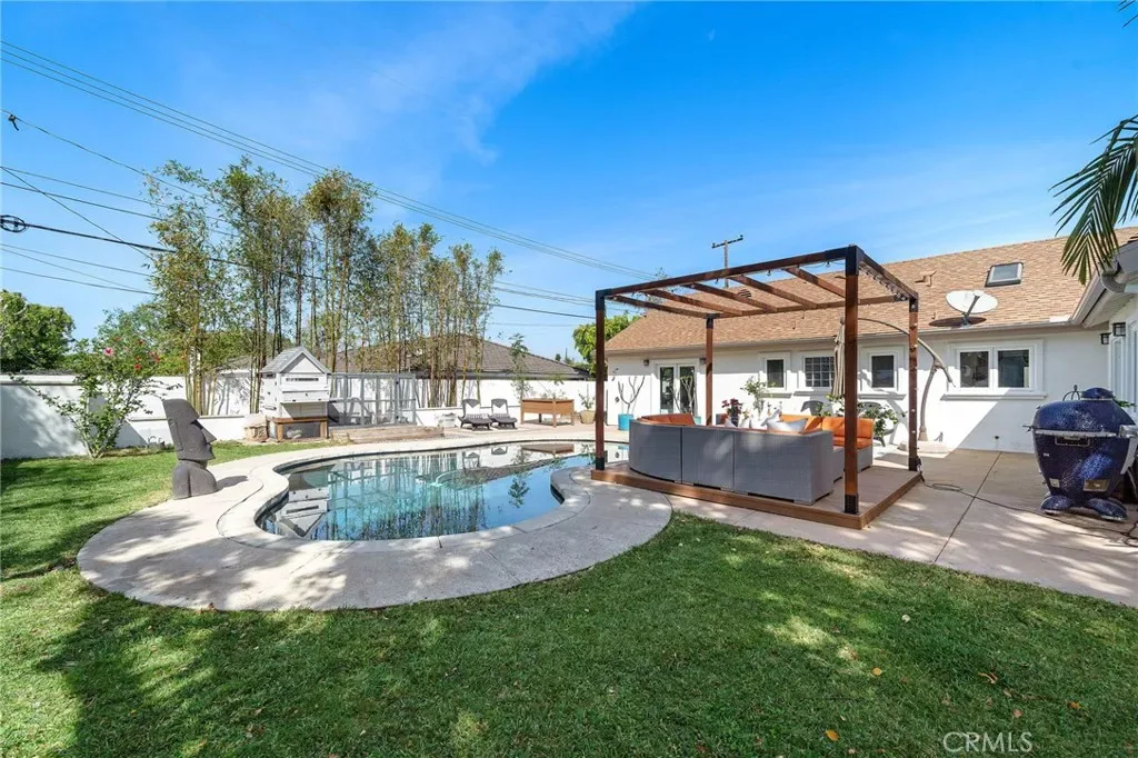 Welcome to effortless California living in the heart of North Tustin, found at 18642 Silver Maple. This tastefully upgraded single-story pool home features myriad upgrades and accoutrements adorning over 2,500 square feet of bright, open living space. Enter the Dutch door and be immediately impressed by what this home has to offer. With 4 bedrooms, 3 bathrooms, and a highly desirable dual primary suite floorplan—perfect for multi-generational living or hosting guests in comfort. The rooms are spacious, bathrooms upgraded, and options endless. Vaulted, open-beamed ceilings enhance the upgraded kitchen, featuring modern appliances and contemporary quartz cabinets as it provides a bright, open feel. Anchoring the home’s central living space, the kitchen flows naturally between the living and family rooms, with a dining area complete with cabinetry and comfort over travertine floors. The family room is a light-filled sanctuary, designed for easy everyday living and entertaining. Three fireplaces throughout the home create inviting spaces to gather and unwind during cooler evenings. Step outside to a backyard designed for year-round enjoyment. The upgraded freeform pool, tropical bamboo and palm landscaping, and multiple outdoor living areas create a private resort-like atmosphere. A grassy lawn next to the pool lends to play, relaxation, or outdoor gatherings under the Southern California sun. Additional highlights include RV parking, art studio/office/yoga room, an outdoor shower for post-swim convenience, and plenty of room to garden, entertain, or simply enjoy the peaceful surroundings. Ideally located within walking distance to excellent schools, close to shopping, dining, and major Orange County destinations while still offering a tranquil residential setting, this North Tustin retreat delivers the perfect balance of comfort, space, and lifestyle.