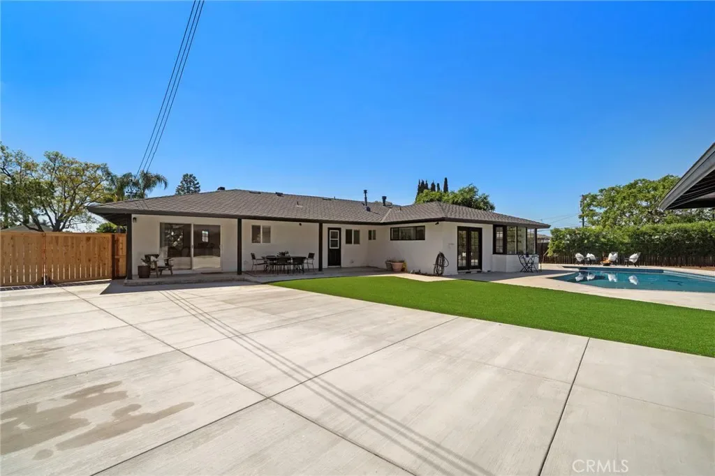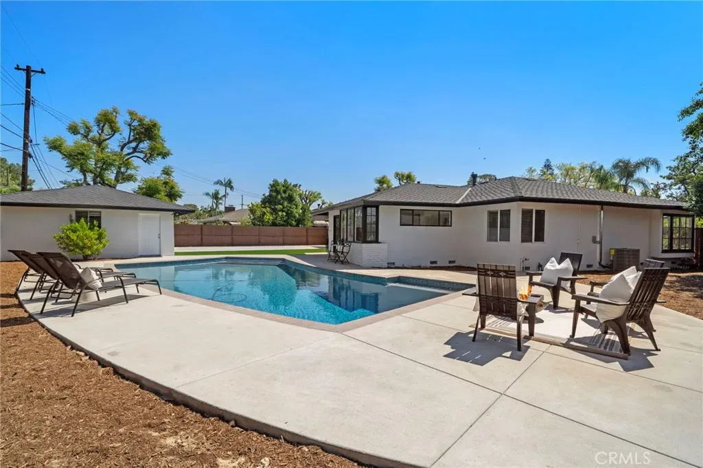Welcome to 18661 Vale Avenue, a quintessential example of California living in the heart of North Tustin. This beautifully maintained single-story ranch home offers a spacious and functional layout, featuring 4 bedrooms, 2 bathrooms, and inviting indoor-outdoor living designed for comfort and enjoyment. Step inside to discover bright, open living spaces enhanced by hardwood flooring, recessed lighting, and a seamless flow ideal for both everyday living and entertaining. The upgraded kitchen is thoughtfully appointed with high-end appliances, granite countertops, and custom cabinetry, complemented by a butler’s prep area for added convenience. Perfectly positioned at the center of the home, the kitchen opens to both the living and family rooms, creating a natural gathering space. The primary suite is generously sized, offering multiple closets and a well-appointed bathroom designed for relaxation. Three additional bedrooms and a shared hall bathroom provide flexibility for a growing household, guest accommodations, or a private home office with serene views of the pool and surrounding landscaping. Additional highlights include an interior laundry area and a brand new HVAC system, enhancing both comfort and efficiency. Step outside to a backyard built for enjoyment. The recently updated pool and deck create an ideal setting for entertaining or unwinding under the Southern California sun, with ample space to host, relax, and enjoy the outdoors. The detached oversized garage offers versatility—comfortably accommodating two vehicles, or presenting an excellent opportunity for a workshop or potential ADU conversion. Ideally located within walking distance to top-rated schools and just moments from shopping, dining, and major Orange County destinations, this North Tustin home delivers the perfect blend of comfort, flexibility, and lifestyle.