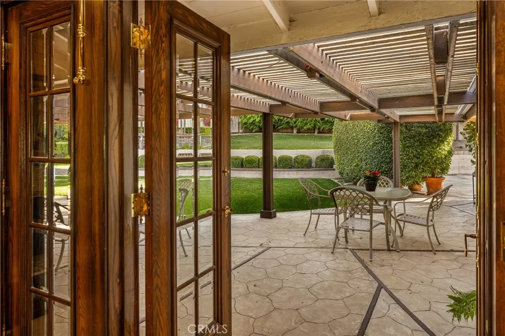 Beautiful Custom Built Ranch-Style home on one of Lemon Height’s most sought after streets. The approach to the property is a wide flat street of similarly elegant custom homes with mature trees and lush landscape and the neighborhood is within walking distance to a back path directly into the Tustin Hills Racquet Club which offers tennis, pools, pickleball, classes, a gym and pilates. This elegant single story home with no interior steps is set on a sprawling almost half-acre lot with beautiful landscaping, a giant covered patio, charming gazebo and oodles of rolling green lawn. Meticulously designed for elegant entertaining and daily enjoyment, some of the interior highlights include handsome oak paneling and built-in bookcases, solid oak doors, French doors with beveled glass, floor-to-ceiling glass entry walls, two inviting fireplaces, and a fun walk-in wet bar. The floor plan is perfectly designed with ample living spaces that looks out to the pristine grounds. The formal living room is finished in fine box paneling and includes a marble-faced fireplace. The informal family room offers a second fireplace, game table and fun wet bar. A large dining room invites entertaining and the sunny kitchen opens to the family room and features a full breakfast nook. Bedrooms were well-designed with three bedrooms on one wing and a separate bedroom and bath on another. The primary bedroom opens to the covered patio and includes a lovely bath with step down shower and adjacent shade patio. The two additional bedrooms on this wing are elegant and oversized and share a bath. The guest or in-laws wing has it’s own bath and is currently used as a home office. The home also includes a laundry room and powder bath. The garage faces the rear of the property and there is ample driveway space and parking. The North Tustin community offers award-winning schools, Peter’s Canyon Regional park, close proximity to freeways – but feels like a world away! Beaches are 18 miles away. Mountains an hour and a half. Offered fully furnished, just bring your suitcases and move right in and start enjoying!