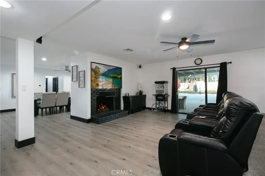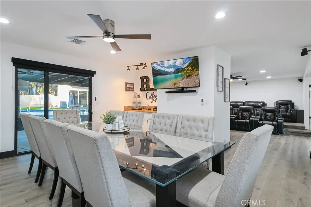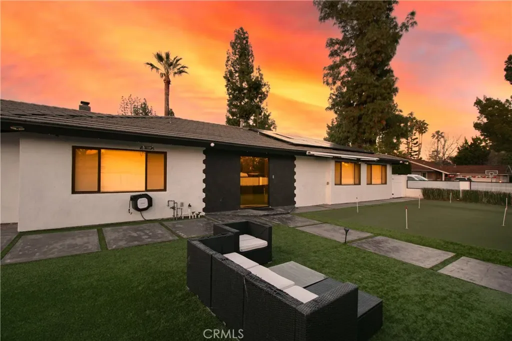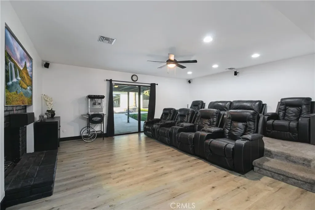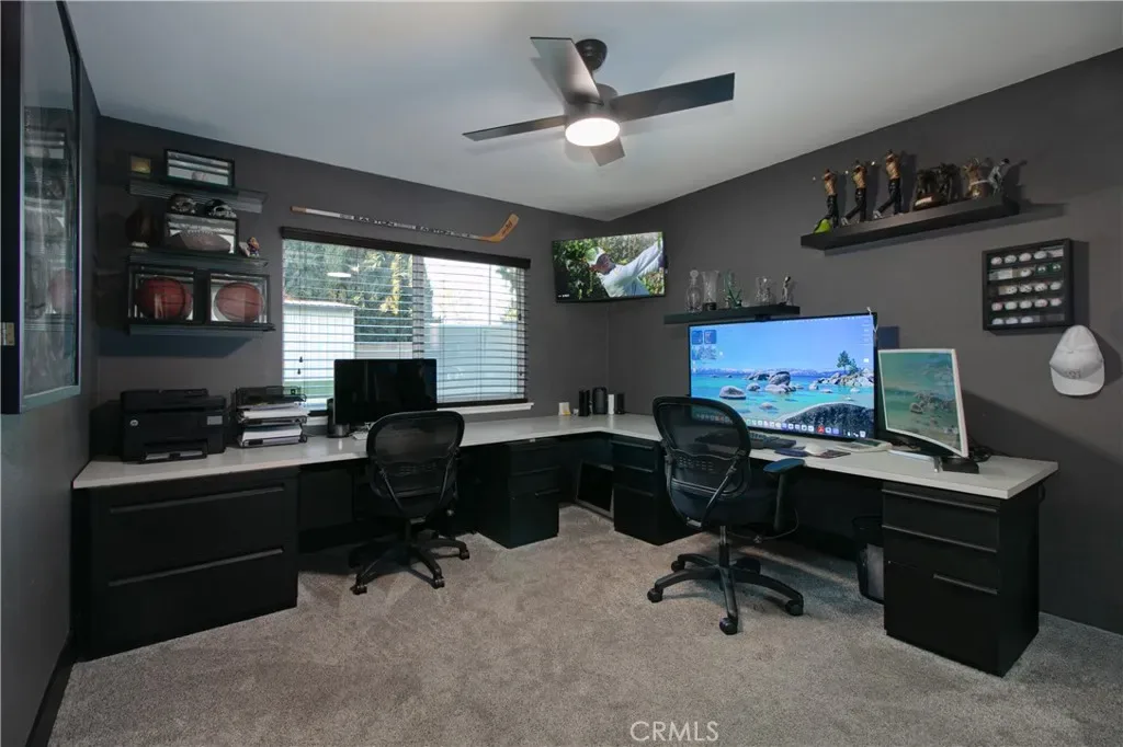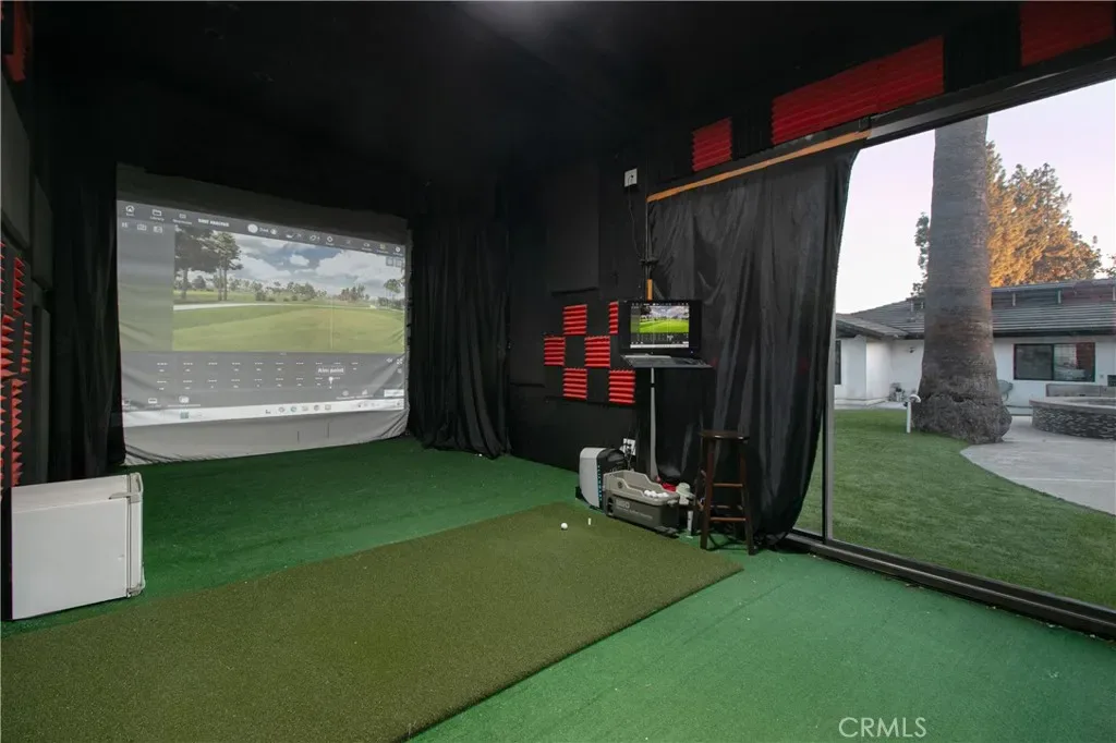 The yard is a private oasis featuring a resort style pool and spa , great for relaxing or host amazing pool parties. RV parking – large enough for two vehicles. Now, for the fun stuff! The “Golf Room” which doubles as a “theatre room” is seriously cool. Imagine practicing your swing year-round, rain or shine, right in your own home. And when you’re done playing Pebble Beach, you can transform it into an epic home theater for movie nights or watching the big game.