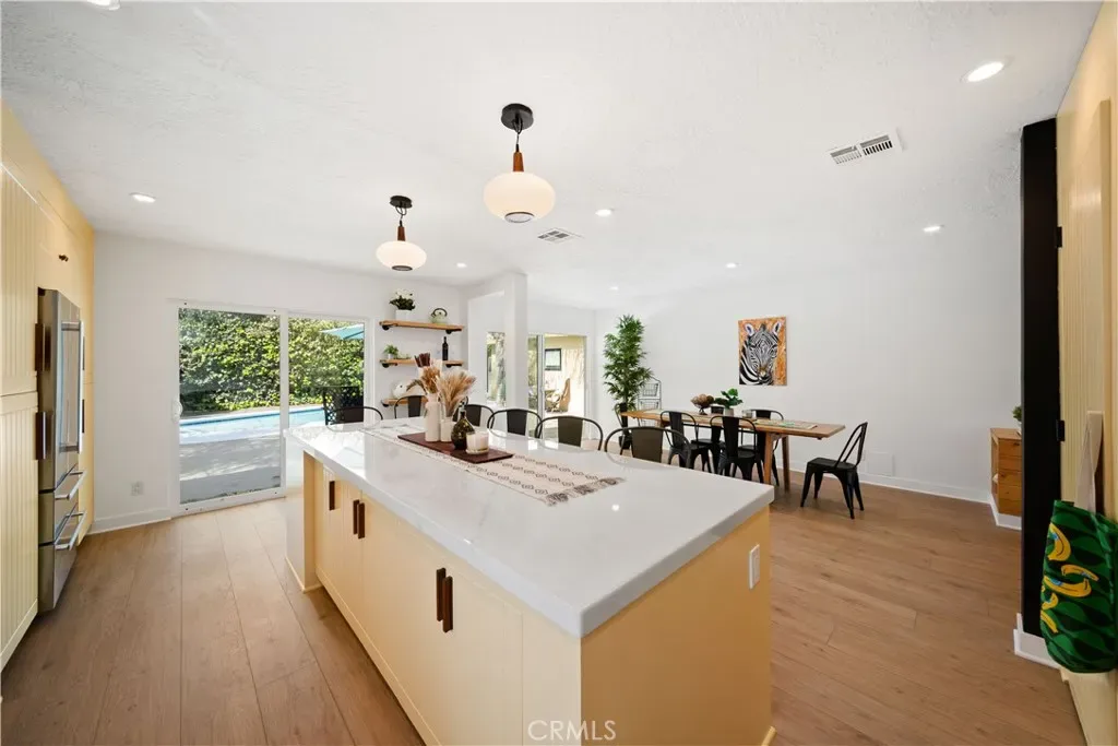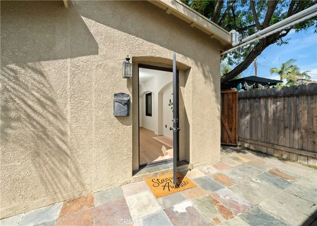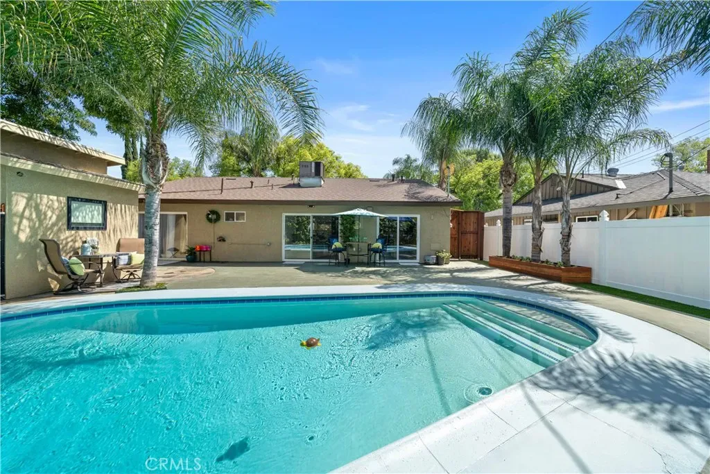 Welcome to a truly one-of-a-kind property offering three separate living spaces thoughtfully designed to blend comfort, flexibility, and effortless indoor-outdoor living. This exceptional compound creates the perfect environment for multi-generational living, rental income, creative workspace, or simply enjoying your own private retreat. Surrounded by smart landscaping and swaying palm trees, the property invites you to relax and unwind in a serene, resort-like setting. Whether hosting weekend BBQs by the sparkling pool or enjoying quiet evenings under the stars, this home delivers a lifestyle of tranquility while remaining conveniently close to everything. The owners have implemented water-saving and eco-conscious upgrades, along with updated major systems and energy-efficient, low-maintenance features throughout. The main residence has been beautifully remodeled with exceptional taste. The expansive open-concept kitchen is an entertainer’s dream, featuring a large center island with seating for six, stainless steel appliances, marble countertops, floating shelves, and abundant cabinetry. A discreetly tucked-away stackable washer and dryer adds everyday convenience. Throughout the home, you’ll find beautiful newer flooring, tastefully updated bathrooms, built-in closet systems, and a newer roof (approx. 1 year old). The elegant primary suite offers generous closet space and a private, updated bath. The detached ADU (approx. 400 sq ft) is a standout feature with beautiful modern style, complete with its own electrical panel, full kitchen, loft storage, stylish bathroom, and in-unit washer and dryer, ideal for guests, rental income, or extended family. The separate studio (approx. 200 sq ft) offers incredible versatility with its own bathroom, kitchenette/bar area. Perfect as a home office, gym, creative space, guest quarters, meditation room, music studio or poolside retreat. The main house (approx. 1,656 sq ft per assessor) features 3 spacious bedrooms, 2 bathrooms, and a bright, flowing floor plan designed for both comfort and inspiration. Additional highlights include new pergola decking, planter boxes, and thoughtfully designed outdoor spaces that enhance both beauty and functionality throughout the property. This is more than a home, t’s a lifestyle compound offering privacy, flexibility, and endless possibilities. Allow me to introduce you to this exceptional property.