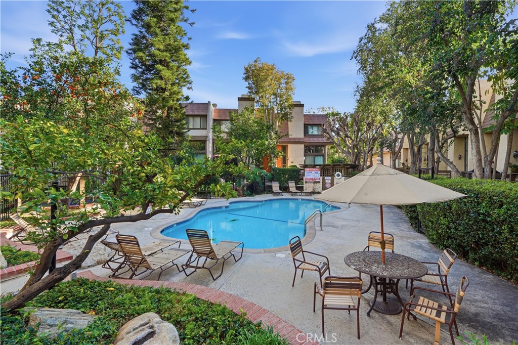 REMODELED townhome in the desirable private community of Northbrooke. Welcome to peace and serenity as colorful landscapes, mature trees and charming bridges over gentle streams abound, in full view from your unit. One of the best locations in Northbrooke. A stunning swimming pool, 3 spas and 2 tennis courts further await you. With over 1,450 sq ft., large 2 bedroom (both ensuite) – 2.5 baths, the open and spacious floor plan is an entertainer’s dream. The living room has elegant high ceilings with recessed lighting, a gas fireplace and distinguished floor-to-ceiling windows and glass doors which open to your private terrace. Open the doors and fill your home with the pleasant sounds of running streams and singing birds. Up a few steps is the large formal dining area, complete with wet bar, overlooking the living room and the views beyond. Adjacent powder room for guests. Continue through to a beautiful kitchen, with white shaker cabinets, white quartz countertops and new LG appliances. An adjacent area inside the kitchen is perfect for informal dining, den or office. Your bedrooms are on the top level for privacy. The huge master suite has north facing windows that bring in magnificent natural light and overlook beautiful trees and a pond area. There are two large closets, one walk in, and ensuite bathroom. The second spacious bedroom also has ensuite bath. Two-car garage, with laundry area, work bench and storage cabinets. Brand new garage door and equipment. Conveniently located close to shopping areas, Northridge Mall, hospital, restaurants, public transportation, and 24-hour security patrol. DON’T MISS OUT ON THIS STUNNING HOME!