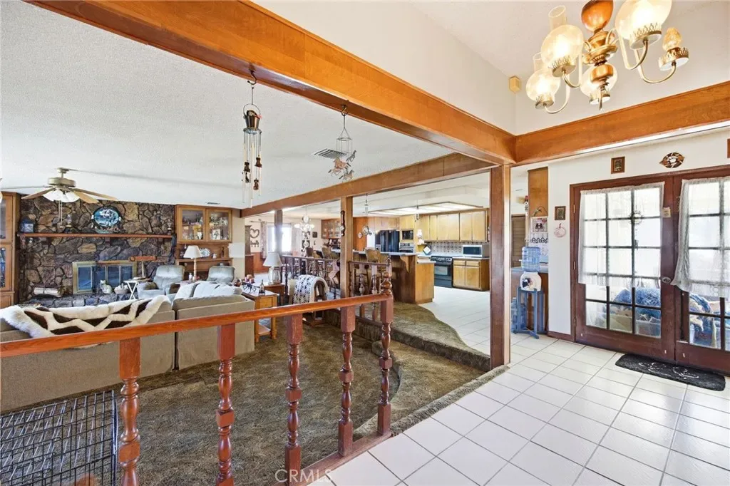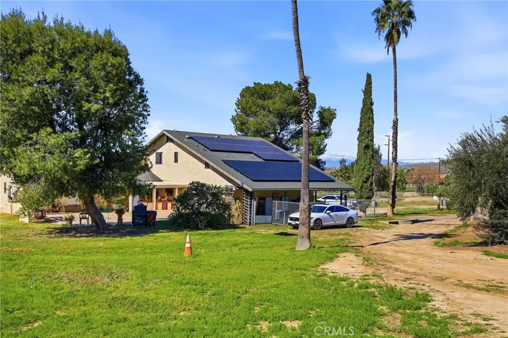 Opportunity for horse lovers. This property has over 2 acres of usable land plus 2 structures. Main house has formal entry open to the step-down living area with natural stone wood burning fireplace. Kitchen over looks living area with oversized breakfast bar/counter, separate prep sink, lots of cabinets for storage, electric oven, dishwasher and trash compactor. Family dining is just off the kitchen with built in china cabinet. Main bedroom is located on lower level with private main bath, double sink vanity, walk in closet with makeup vanity, privacy door for walk in shower. Upper level has 2 guest rooms, one with office and seperate guest bath. Main house has solar with back up batteries, large concrete driveways for access, rear patio with newly installed alumi cover. The separate ADU is approximately 650 sq ft, kitchen, sitting area, 1 bedroom and 2 full baths rooms with walk in showers, perfect if you are looking for an additional rental property. There is a covered porch area to sit and relax. Exterior has 6 stall barn with breeze way, each stall has an exterior pipe corral with gate panels, 2 tack rooms and cross tie. There is plenty of space for that arena. Property is fully fenced, 2 separate septic systems for each structure. Property has so much potential for you and the horses!