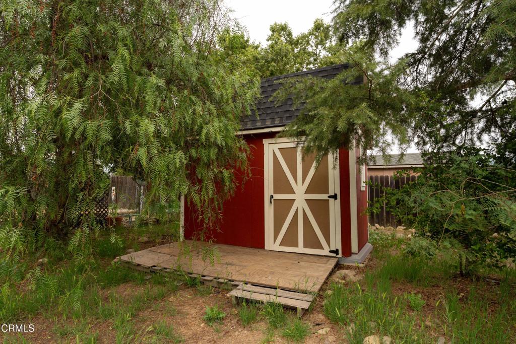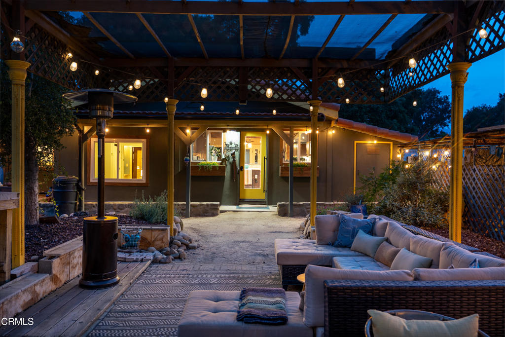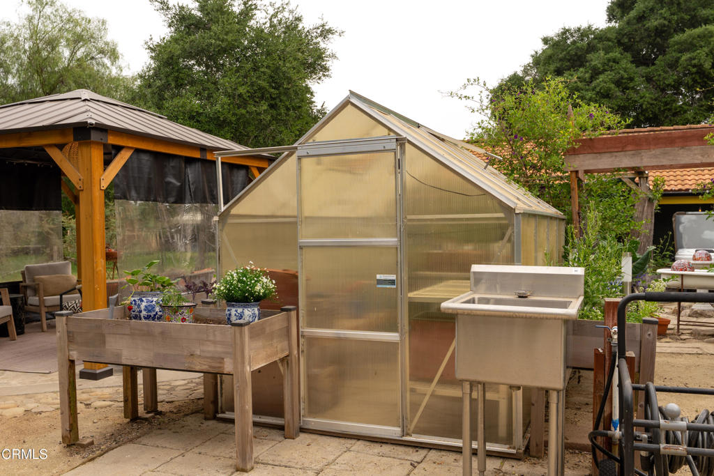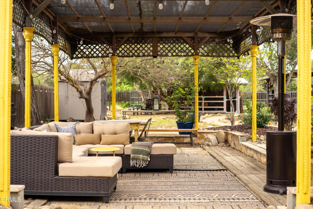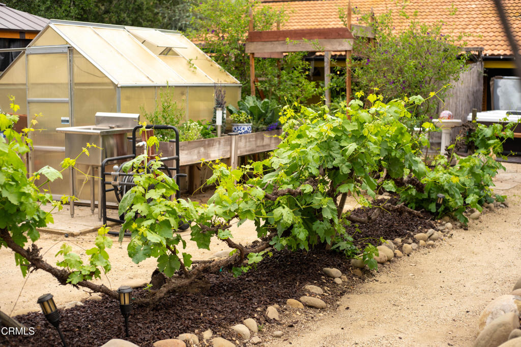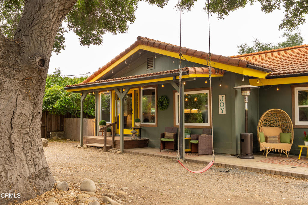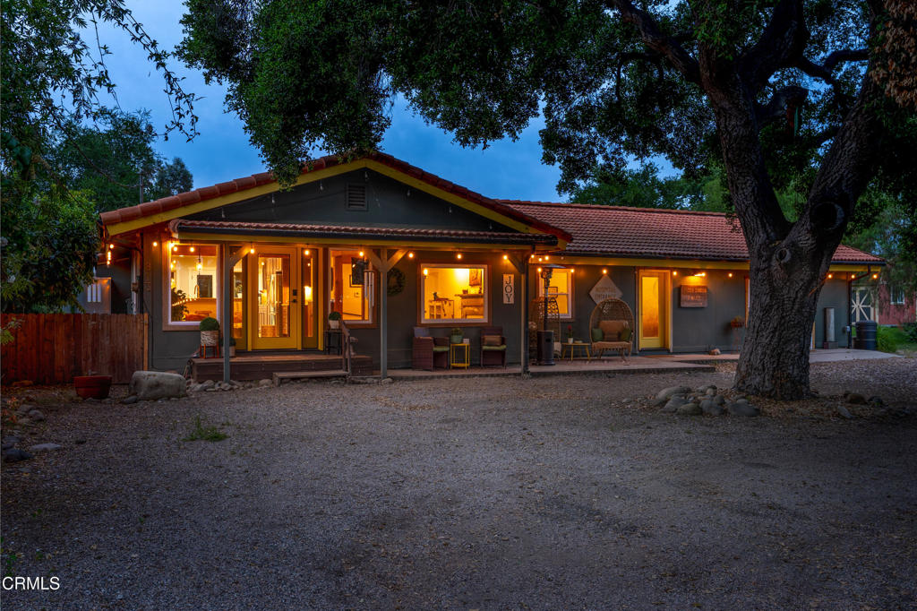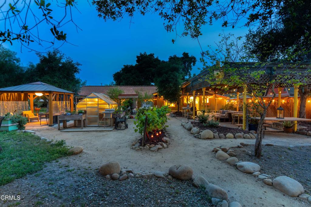 Discover your own private retreat, tucked behind a gated entrance on nearly an acre. Where rustic charm meets modern comfort with sweeping vineyard and hillside views. This thoughtfully renovated home features a warm open-concept layout, anchored by a spacious kitchen with large gathering island, and a premium Wolf range. Luxury vinyl plank flooring, dual-paned windows throughout, bonus family room with french doors. The primary suite boasts a relaxation space / closet. with a soaking tub, vanity area, built-in fan/bluetooth speaker creating a meditative environment that continues outside to the adjacent koi pond.Step outside into a serene and inspiring oasis – the grounds are designed for enjoyment and have endless possibilities. Winding decomposed granite pathways lead you past many gathering spaces, mature oak trees, large chicken coop, corral for livestock, and a greenhouse surrounded by raised beds – with an off-grid vibe, it’s perfect for the hobby farmer. Spend sunny afternoons in the above-ground pool, or relax and star gaze from the bubbling spa. Versatile bonus spaces include a fully outfitted yurt, and four finished Tuff sheds. Perfect for guest overflow, creative studios, or work-from-home set ups. Located just minutes from Lake Casitas, local dining, and easy commuter routes, this property combines the quiet serenity of country living with accessibility–perfect for those seeking a warm, inviting, and truly unique ranch lifestyle.