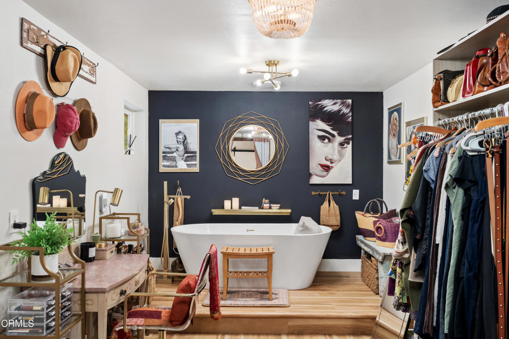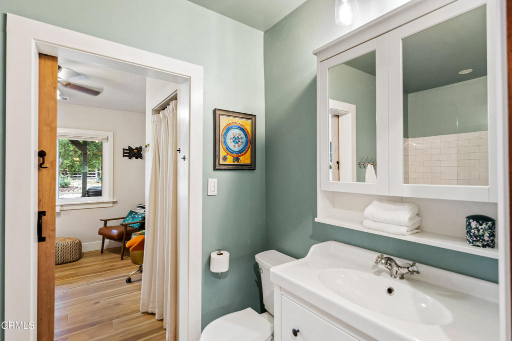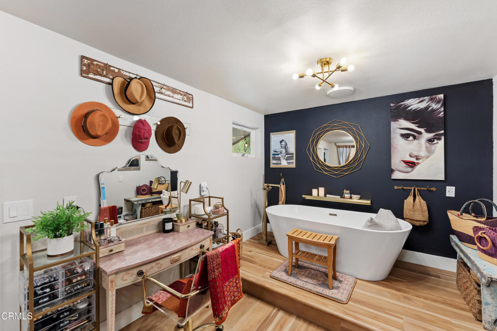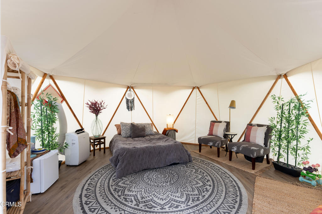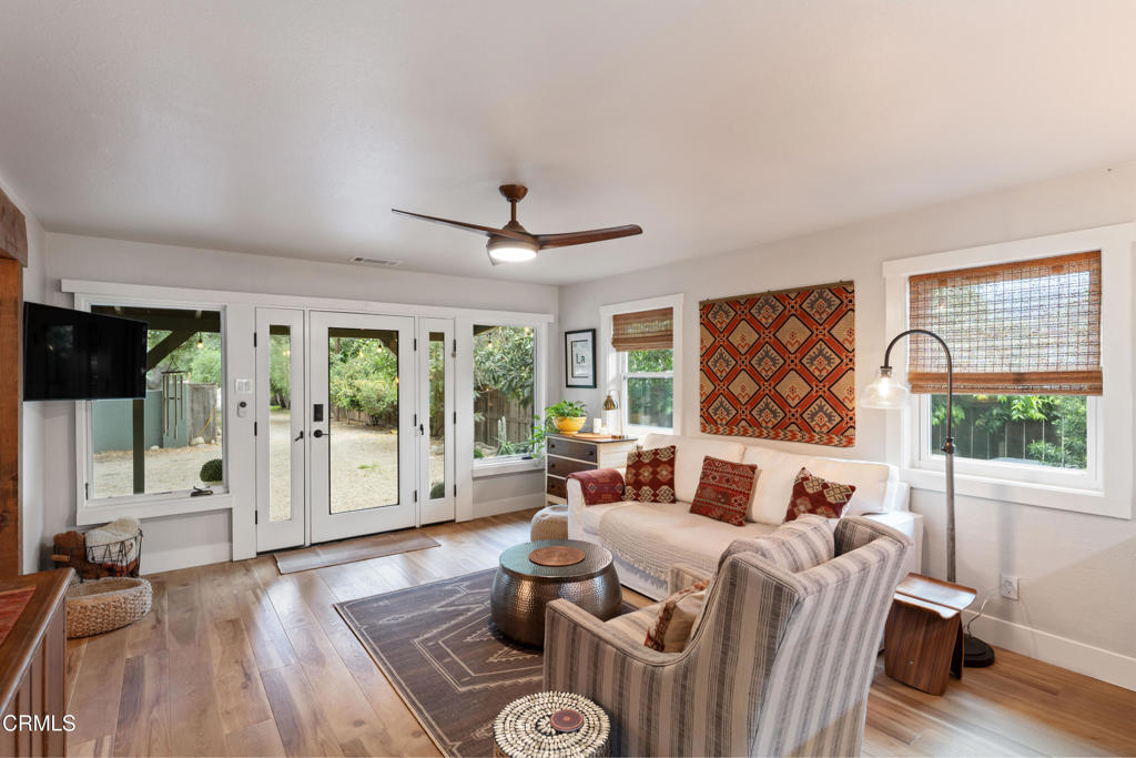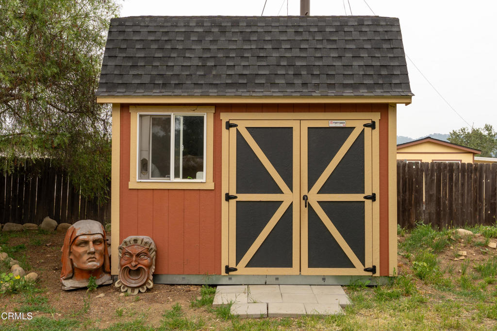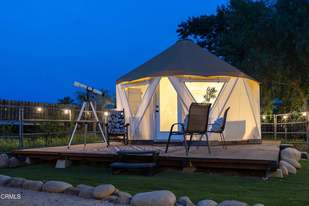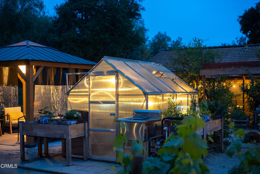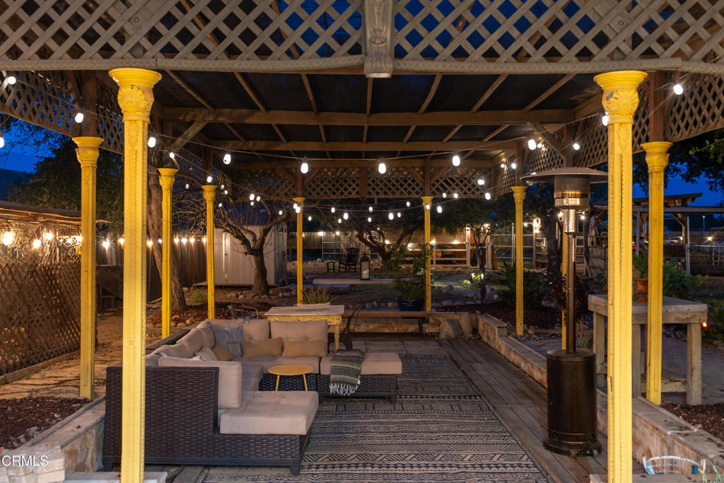 Discover your own private retreat, tucked behind a gated entrance on nearly an acre. Where rustic charm meets modern comfort with sweeping vineyard and hillside views. This thoughtfully renovated home features a warm open-concept layout, anchored by a spacious kitchen with large gathering island, and a premium Wolf range. Luxury vinyl plank flooring, dual-paned windows throughout, bonus family room with french doors. The primary suite boasts a relaxation space / closet. with a soaking tub, vanity area, built-in fan/bluetooth speaker creating a meditative environment that continues outside to the adjacent koi pond.Step outside into a serene and inspiring oasis – the grounds are designed for enjoyment and have endless possibilities. Winding decomposed granite pathways lead you past many gathering spaces, mature oak trees, large chicken coop, corral for livestock, and a greenhouse surrounded by raised beds – with an off-grid vibe, it’s perfect for the hobby farmer. Spend sunny afternoons in the above-ground pool, or relax and star gaze from the bubbling spa. Versatile bonus spaces include a fully outfitted yurt, and four finished Tuff sheds. Perfect for guest overflow, creative studios, or work-from-home set ups. Located just minutes from Lake Casitas, local dining, and easy commuter routes, this property combines the quiet serenity of country living with accessibility–perfect for those seeking a warm, inviting, and truly unique ranch lifestyle.