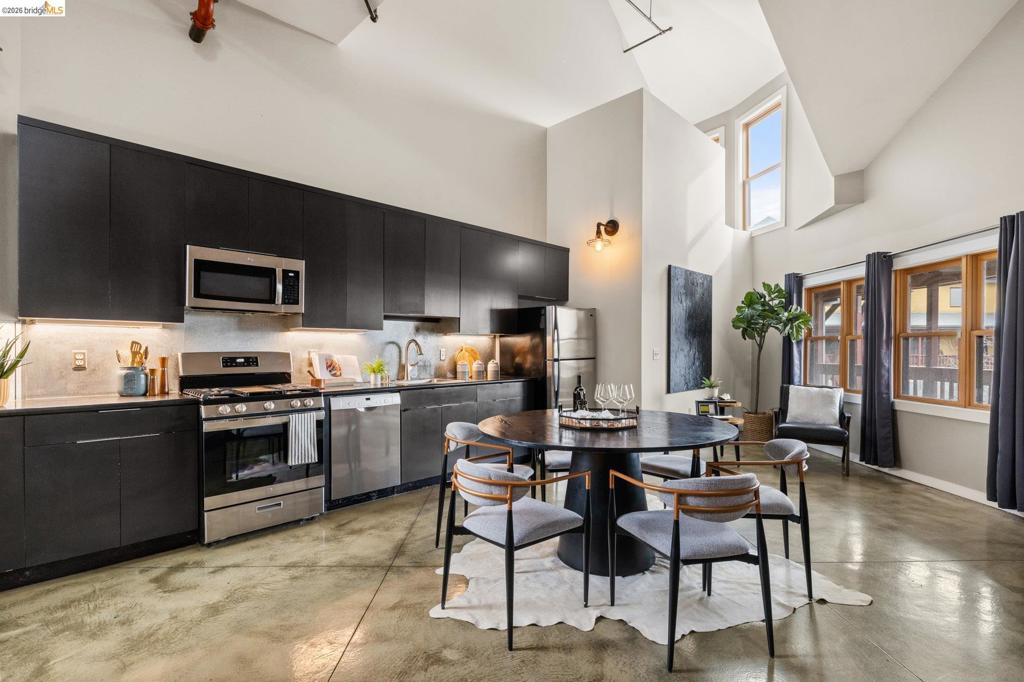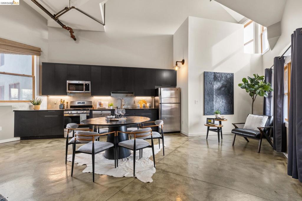 Transparent price! This unique waterfront community is tucked away along the Bay Trail on the estuary’s edge in Oakland – a stone’s throw from the Park Street Bridge and the best Alameda has to offer. Achieve your loftiest goals where industrial chic meets modern design, featuring a spacious open floor plan with soaring cathedral ceilings and sleek concrete floors. The wide open-concept kitchen is ideal for seamless entertaining that spills into the dining and living areas. Find privacy in the main level bedroom with en suite bathroom while the spacious upstairs loft offers a flex space for a bedroom, office, or creative space. An additional bathroom rounds out the loft’s offerings. Complete with in-unit laundry, ample storage, designer light fixtures, and gated parking with deeded parking.