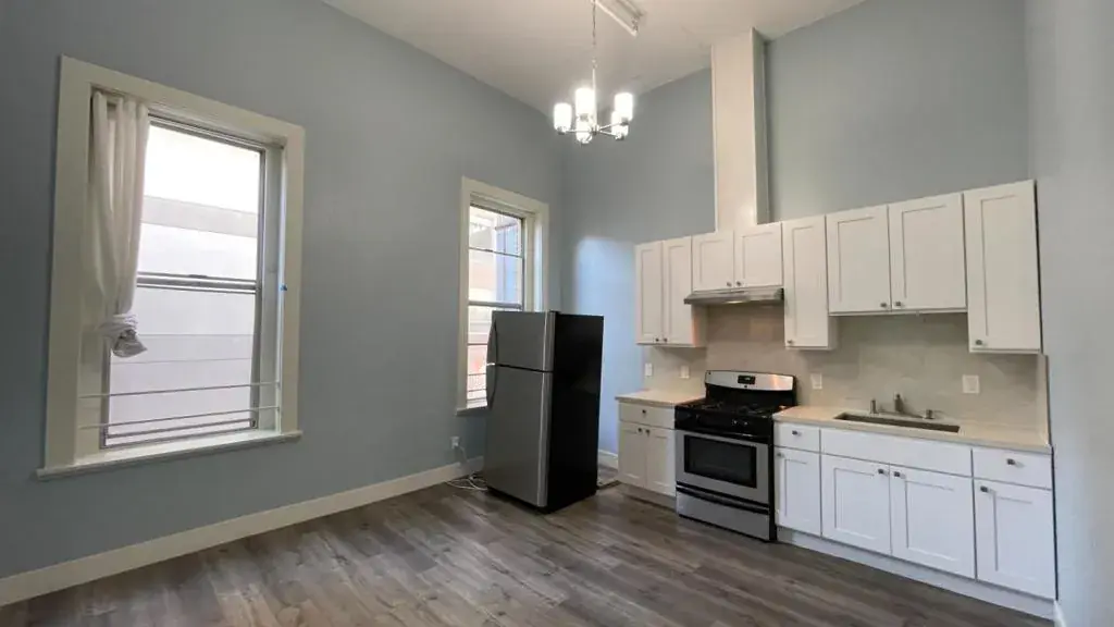 For Rent! NY style loft located in vibrant downtown Oakland. Remodeled 2 bedrooms and 1 bathroom with super tall ceilings, windows and wood flooring. Unit faces rear of the bldg so quiet and provides a nice relief when you get home. Stainless steel appliances include refrigerator and oven. This is a boutique bldg with 8 residential units on the upper level. Close to BART, parks, Chinatown, Lake Merritt, walk to everything! Immediate move in available.