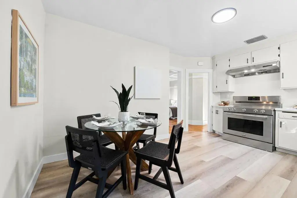 Set on a quiet block in Oaklands beloved Cleveland Heights neighborhood, 807 Brooklyn Ave is a timeless Craftsman bungalow that blends vintage charm with thoughtful modern updates. Behind the welcoming front porch, sunlight pours through abundant windows onto warm hardwood floors, highlighting classic architectural details throughout. The inviting living room centers around a cozy fireplace with built-in shelving, creating a natural gathering space that feels both elegant and comfortable. The home flows seamlessly into a gracious dining room with original built-insperfect for hosting everything from casual weeknight dinners to festive celebrations. A beautifully updated kitchen pairs quartz countertops with stainless steel appliances, offering both style and function. Three well-proportioned bedrooms provide flexibility for rest, work, or guests. Outside, the serene garden retreat features mature landscaping, fragrant blooms, and a striking banana treean ideal setting for morning coffee or evening wind-downs. Just moments from Lake Merritt, neighborhood parks, BART, and easy freeway access, this lovingly maintained 1921 home delivers classic Oakland character with everyday convenience.