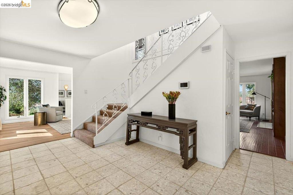 This light-filled home blends privacy, open space, and a layout designed for life. Living room and Family room both have fireplaces and access to backyard. Updated Kitchen with an herb window. Breakfast nook opens to the backyard. Upstairs the primary Bedroom has a private patio, three additional bedrooms offer flexibility for growing family, guests, or office use. A generous 600+/- Bonus room with kitchenette is ideal for media, play space, or extended living. Patios, dog run, basketball ready driveway and nearby trial access to Skyline make outdoor living easy. New Roof, Updated baths, new appliances. Two car garage with driveway space for 2 more. Convenient to Hwy 580 & a favorite neighborhood pizza spot. This Oakland hill home offers privacy, flexible space, beautiful views, and room for gathering, play and gardening.