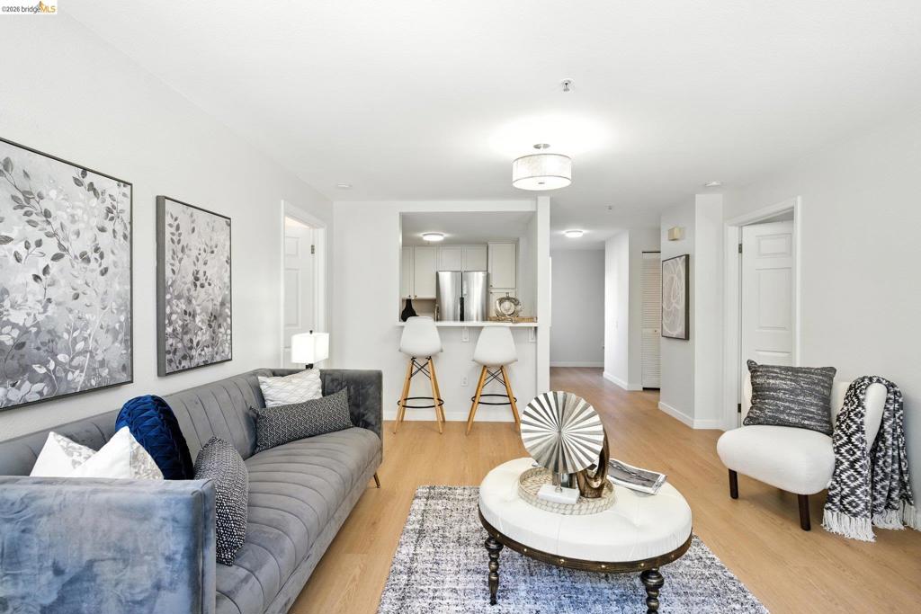 Welcome to a modern oasis in the heart of Oakland at 555 10th Street, Unit 201. This stunning 2-bedroom, 2-bathroom condo features 906 sq/ft of thoughtfully designed living space. With a seamless open layout, the living, dining, and kitchen areas flow effortlessly, offering a perfect setting for both relaxation and entertaining. The unit comes equipped with a primary bedroom suite and the convenience of a washer and dryer, ensuring that your daily routines are as efficient as possible. Embrace modern lifestyle with premium amenities including an elevator, assigned garage parking, and a secure entrance with a security gate and voice intercom. Residents can enjoy the tranquility of a common garden and the vibrancy of a media/recreation room and resident’s lounge. Untra close to bustling coffee shops such as blue bottle, The Caffe by Mr. Espresso Bar, BART, and the cultural hub of Oakland Chinatown, downtown, and Jack London Square; the location offers unparalleled accessibility to the city’s finest attractions and amenities. Whether you’re looking for a fresh start or a convenient urban retreat, this residence provides a perfect blend of style, location, and ease. Discover your new beginning at 555 10th Street, Unit 201, where urban sophistication meets everyday comfort.