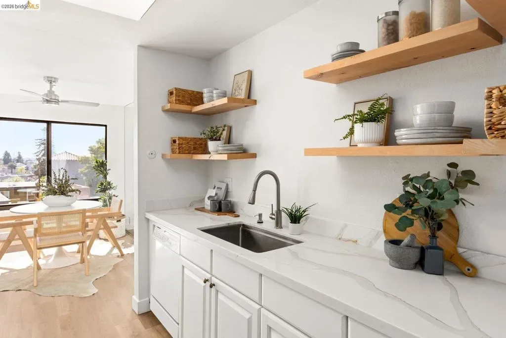 Welcome to this bright, inviting condominium home where comfort meets convenience. Both bedrooms are ensuite and provide abundant closet space. You will love the stylish, updated kitchen, perfect for culinary adventures, and sleek, newer flooring that adds a modern touch throughout. Natural light fills the airy living and dining areas, with a focal point fireplace. Included are the ultimate urban perks: in-unit laundry and a dedicated parking space. Step out on the balcony to enjoy the tree-top vistas of blue skies. The location is a dream—just three blocks from iconic Lake Merritt with views, the nightly show of the Necklace of Lights, and outdoor activities. Enjoy the vibrant local scene close to the farmer’s market, trendy cafes, and a famous historic movie palace. There are ample public transportation options nearby. Whether you’re relaxing or entertaining guests, 322 Hanover #409 provides the ideal blend of style, practicality, and location.