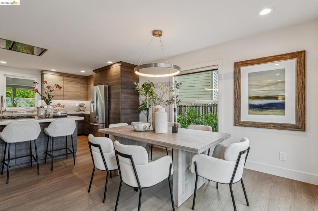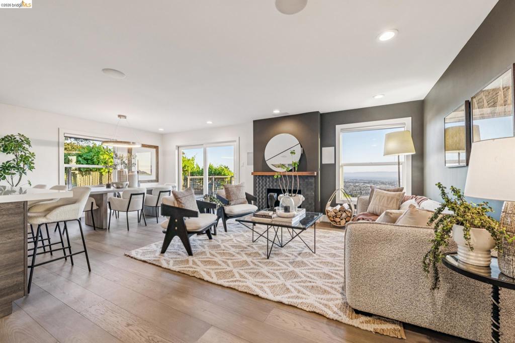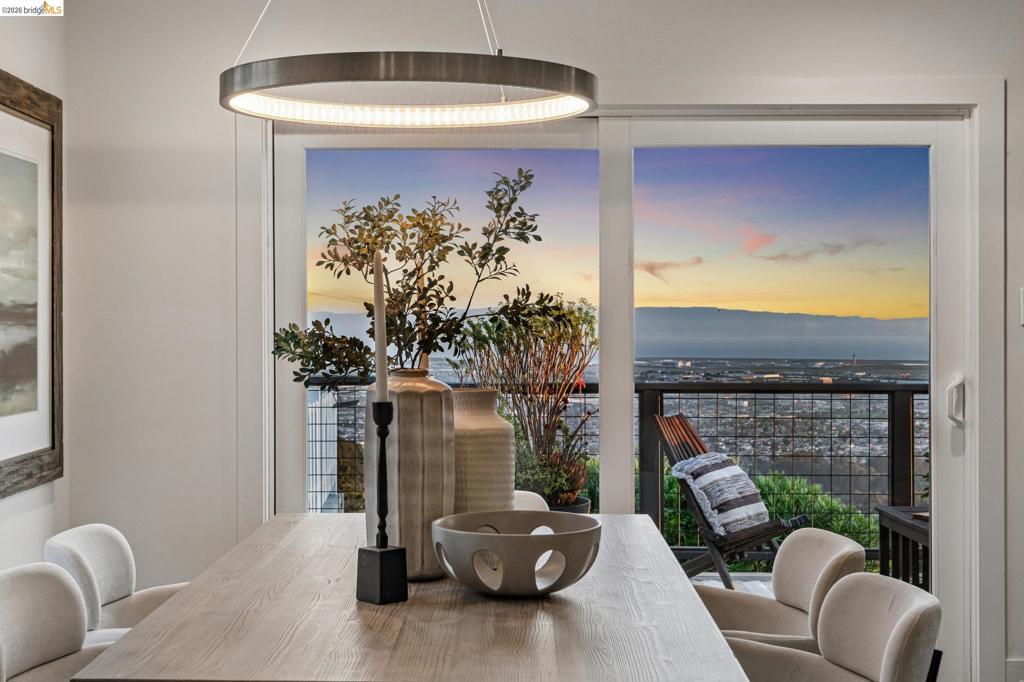 Bask in amazing Bay views with this luxurious, luxuriously-updated Oakland Hills residence with premium chefs kitchen. Exuding style, natural beauty, and awe-inspiring vistas, this fabulous home enjoys panoramic views of the San Francisco Bay – from the South Bay to the City Skyline to Golden Gate Bridge, Alcatraz, Mt. Tam & beyond. Featuring 3 bedrooms and 2.5 baths across 2,076 sf of modern living, this home is an exquisite integration of nature and design. Showcased by a custom-built, open-concept Chef’s kitchen this home is an entertainer’s dream with end-to-end windows looking out on a spacious deck and beyond to the Bay. Take in a stunning sunrise or sunset over the Bay from your spacious primary bedroom ensuite. 2 additional generously sized bedrooms on the main level deliver great utility with space for family, guests, or home office. Downstairs step into a grand, expansive approximately 560 sq ft family room that offers unlimited options for enjoyment. Location, gorgeous style, and amazing views – you can have it all! In addition to the kitchen, recent upgrades include roof, tankless water heater, energy efficient furnace, dual pane windows. Come home to 341 Rishell Dr and find your peaceful, natural balance in this one-of-a-kind home. Open Sat & Sun 2-4. Views: Downtown