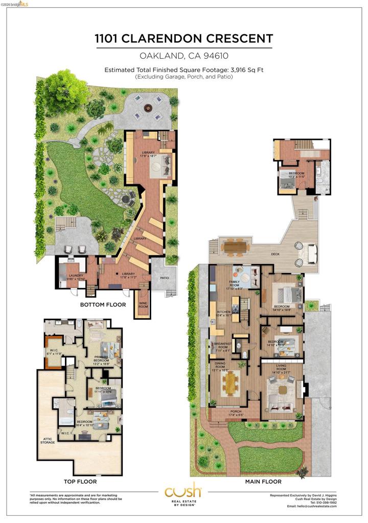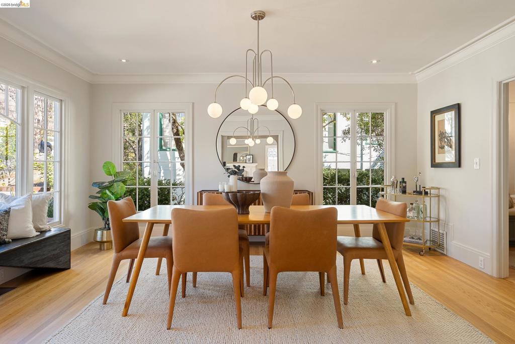 Crocker Highlands at its finest. A rare three-level home on one of the neighborhood’s most coveted blocks, 3,900 sq ft of thoughtful design, enduring character & effortless livability. The main level opens to a light-filled living room w/ fireplace & built-in bookshelves, a formal dining room, & an eat-in kitchen anchored by a Lacanche range, stone counters & a sunny breakfast nook. The adjoining den flows to generous decks overlooking private gardens w/ lemon & plum trees. Two additional bedrooms & a powder room complete this floor. Upstairs, all bathrooms have been fully renovated. The primary suite features vaulted ceilings, a walk-in closet & a spa-like bath w/ dual vanities & frameless glass shower. Two additional bedrooms both w/glimpses of the Bay share a sleek hall bath. The lower level offers a writer’s retreat w/ cork floors, bird’s-eye maple desk, built-in library & a wall of windows onto the garden — an exceptional home office space, plus a dedicated laundry room & wine cave. A dedicated staircase leads to a private en-suite bedroom w/ deck access. Steps from award-winning Crocker Highlands Elementary. Minutes to the best of Grand Lake shops and restaurants, Lake Merritt & Bay Bridge access to SF.