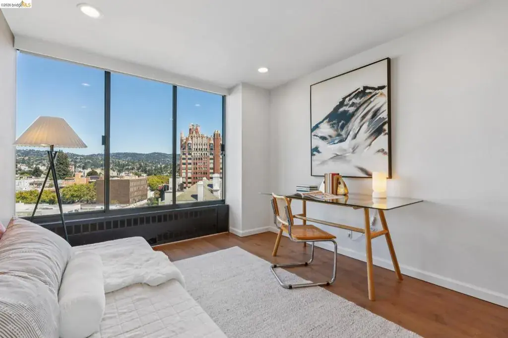 It’s finally happened: a highly sought after, rarely available, two bedroom, two bathroom apartment in the coveted Park Bellevue is looking to change hands. With wall-to-wall windows and panoramic city and lake views, it is immediately obvious why these units rarely come up – and why they are so desired. Open concept living/dining, hardwood floors throughout, and a generous, modern kitchen invites gatherings, hosting, and basking in the golden hour sunsets that bathe the apartment in pink and orange. Both bedrooms look over the skyline and lake, and two well appointed bathrooms channel a spa-like serenity that will make it hard to leave home; though when you do, you won’t need to go far for coffee, walks, and dinner out. Park Bellevue is ideally situated along the lake’s edge, meaning the best of Oakland’s food scene is centered in the surrounding blocks; picnics and dog-walks on the shore are at your fingertips; and the vibrant joy and liveliness of Oakland is all around. And yet, your oasis is just steps away – zip up the elevator to indulge in the pool with sweeping lake views, gym, sauna, or clubhouse. Additionally, enjoy the peace that comes with 24/7 on-site security, and a secured, covered parking space. The Park Bellevue is luxury, beauty and ease. Welcome home.