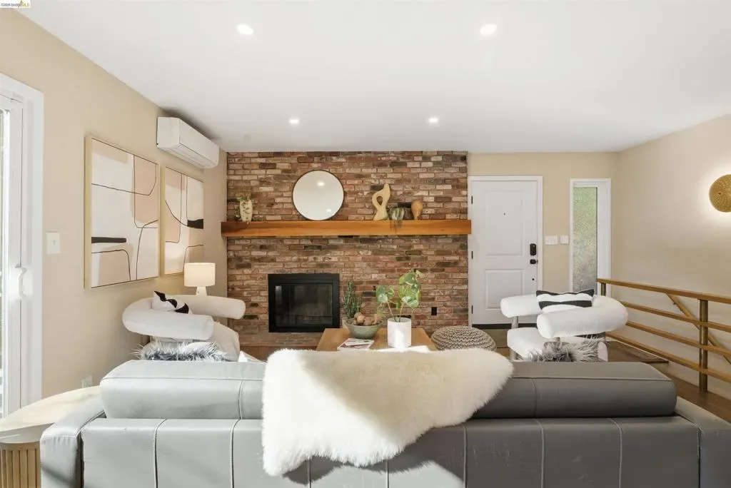 Tucked into the Oakland Hills on a rare double lot, this mid-century-style home offers a peaceful, nature-surrounded setting with the convenience of city access. The open-concept upper level connects the living room, dining area, and kitchen, filled with natural light and featuring hardwood floors, updated millwork and appliances, and energy-efficient windows throughout. A brick fireplace anchors the space, accented by a birch threshold for a refined, modern touch. Comfortable bedrooms offer great light and storage, while refreshed interior finishes and updated flooring on the lower level add move-in-ready appeal. Outdoor living shines with a wrap-around deck and expansive patio, ideal for entertaining, relaxing, and enjoying the surrounding trees and wildlife. The hillside landscape is dotted with native California plants. Located just minutes from Montclair Village, neighborhood parks, Highway 13, and key commuter routes, this home blends retreat-like privacy with everyday Oakland convenience.