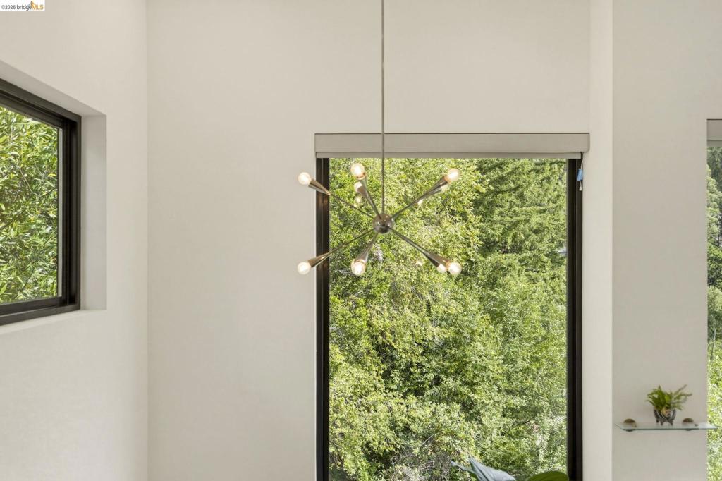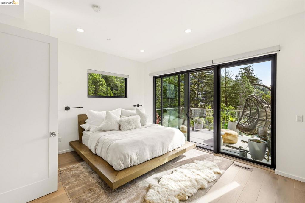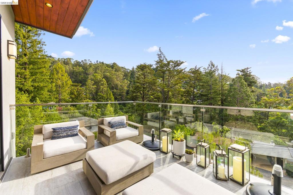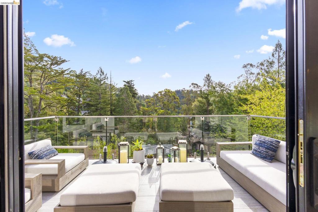 Designed by Oakland-based, boutique residential design architect John Newton, 45 Homeglen is a striking modern residence tucked on a quiet lane in Montclair—minutes from the shops, restaurants, & vibrant Sunday mornings of Montclair Village. This 2020-construction home has been thoughtfully designed and meticulously maintained. An open floor plan welcomes you with oversized windows framing lush views from nearly every room. It feels like living among the treetops—even from the chef’s kitchen, with marble countertops, a waterfall island, sleek appliances, & designer fixtures. Dining and living areas are crowned by a signature butterfly roof for dramatic ceiling height and wonderful scale. An oversized sliding door opens to an expansive glass-walled deck with unobstructed skyline views. The lower level offers a serene primary suite w sunny bath and direct deck access, two additional bedrooms, and another full bath. Upgrades incl A/C, whole-home reverse osmosis, motorized shades, and a pantry. The rear yard has exciting potential—garden, or a perhaps a detached structure (ADU plans avail). Ample storage and a 2-car garage w/ internal access. Close to Huckleberry and Sibley Regional Parks, coveted Montclair schools, and the wooded setting that makes Homeglen Lane so special.