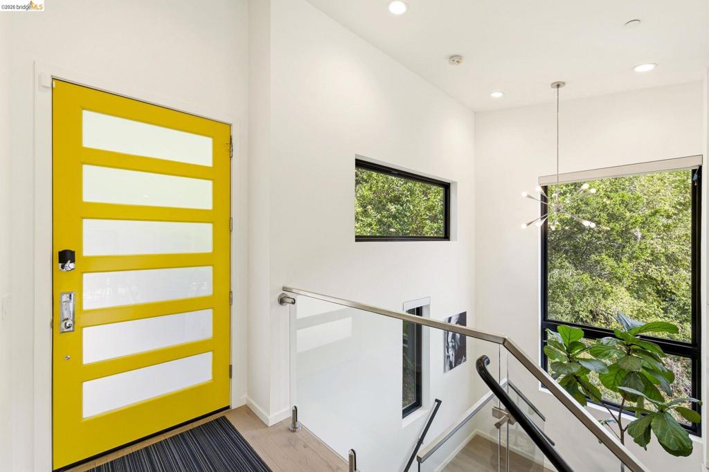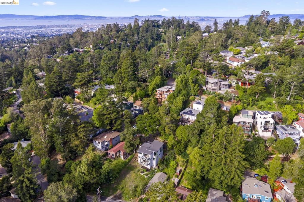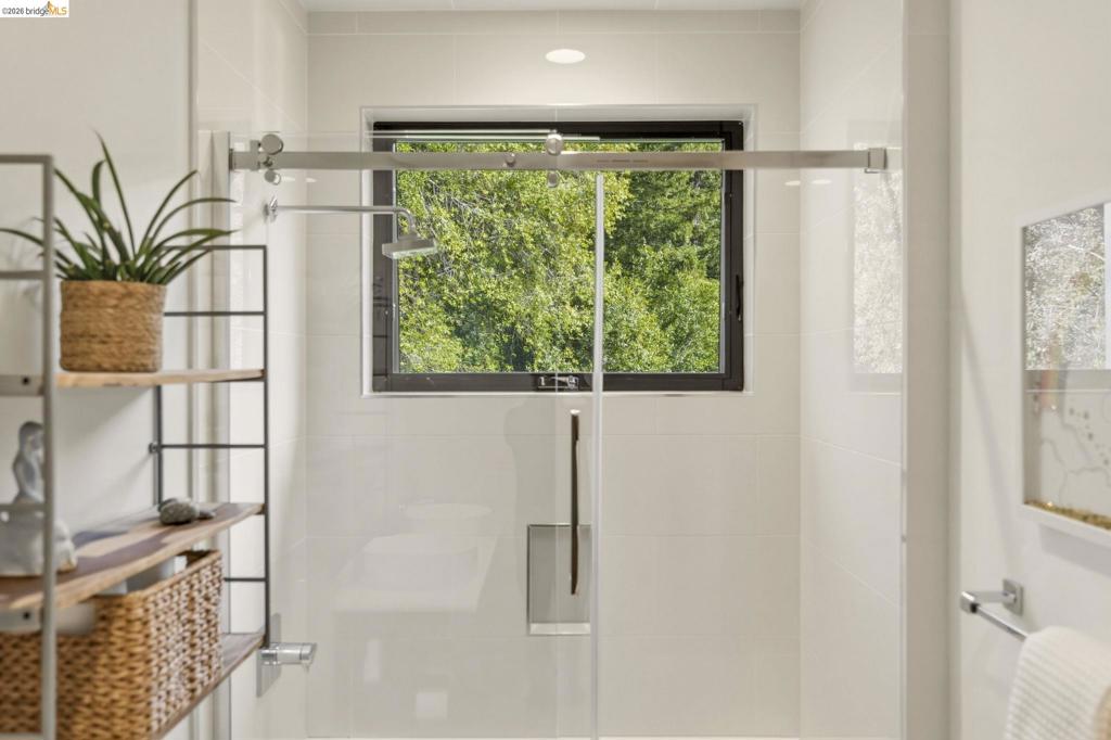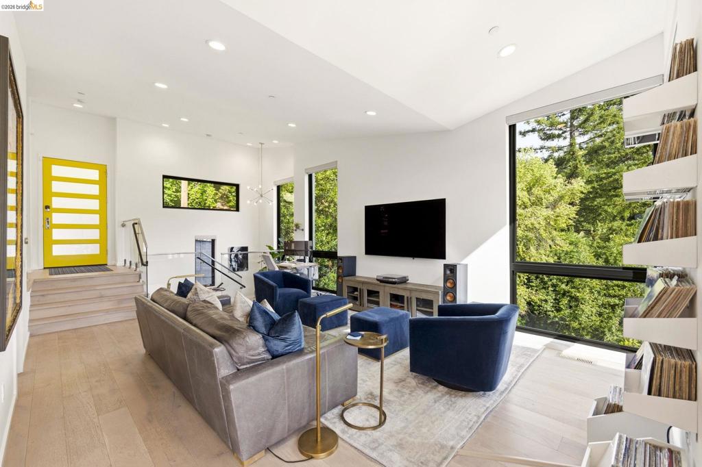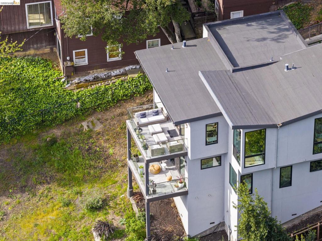 Designed by Oakland-based, boutique residential design architect John Newton, 45 Homeglen is a striking modern residence tucked on a quiet lane in Montclair—minutes from the shops, restaurants, & vibrant Sunday mornings of Montclair Village. This 2020-construction home has been thoughtfully designed and meticulously maintained. An open floor plan welcomes you with oversized windows framing lush views from nearly every room. It feels like living among the treetops—even from the chef’s kitchen, with marble countertops, a waterfall island, sleek appliances, & designer fixtures. Dining and living areas are crowned by a signature butterfly roof for dramatic ceiling height and wonderful scale. An oversized sliding door opens to an expansive glass-walled deck with unobstructed skyline views. The lower level offers a serene primary suite w sunny bath and direct deck access, two additional bedrooms, and another full bath. Upgrades incl A/C, whole-home reverse osmosis, motorized shades, and a pantry. The rear yard has exciting potential—garden, or a perhaps a detached structure (ADU plans avail). Ample storage and a 2-car garage w/ internal access. Close to Huckleberry and Sibley Regional Parks, coveted Montclair schools, and the wooded setting that makes Homeglen Lane so special.
