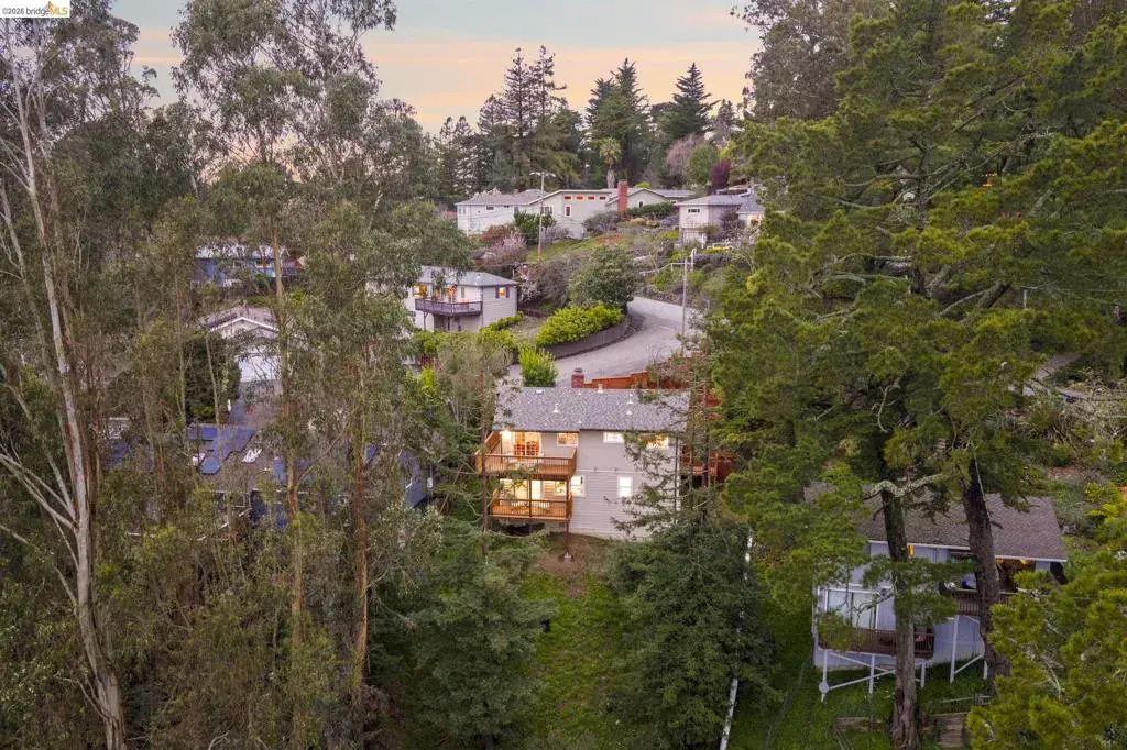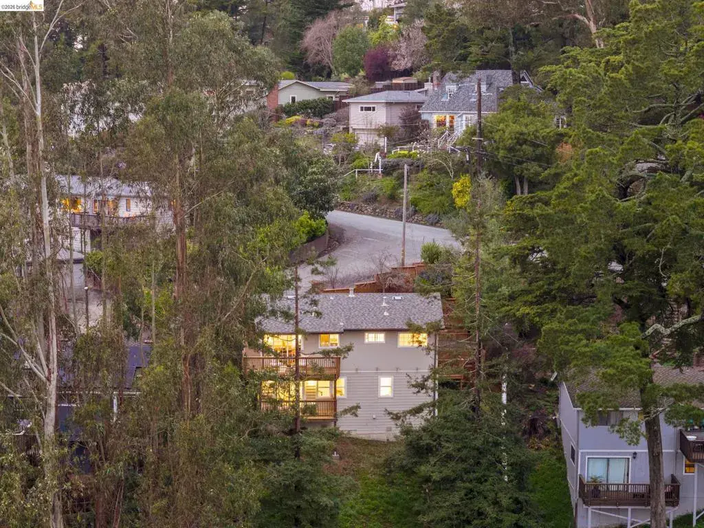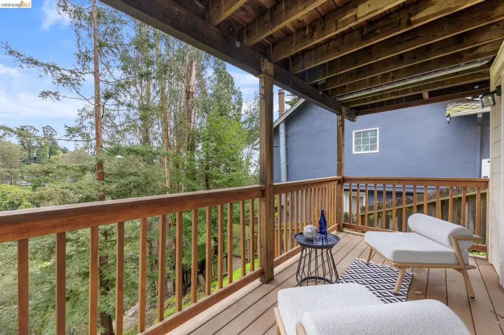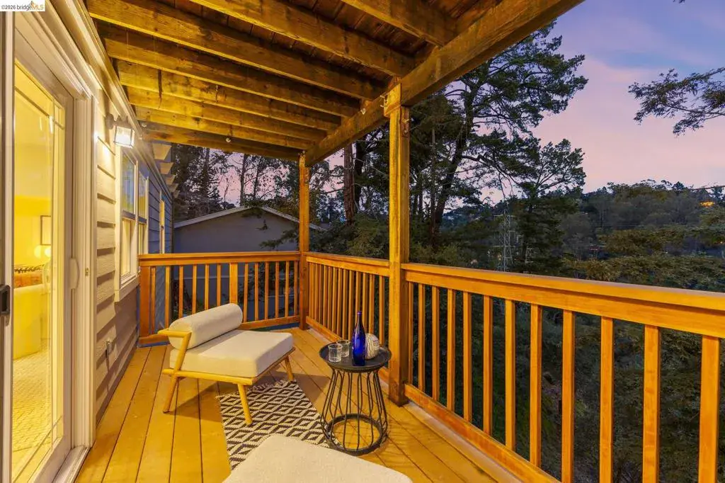 Tucked away on a quiet court in the coveted Montclair Hills of Oakland, this home offers the privacy, charm, and indoor-outdoor living you’ve been dreaming of. Surrounded by mature trees with no rear neighbors, this updated two-story home feels like a serene retreat, with nature framed from nearly every window. The thoughtfully designed open floor plan features hardwood floors, dual-pane windows, a cozy fireplace, and updated modern lighting that adds warmth and sophistication. The main level includes two bedrooms and one bathroom and flows seamlessly to a welcoming front patio and a spacious wraparound deck—ideal for entertaining, dining al fresco, or enjoying peaceful mornings among the trees. The layout offers flexibility and comfort. The primary suite occupies its own downstairs level, creating a true sanctuary complete with a private deck perfect for unwinding. Updated and move-in ready, this home also includes a Tesla electric vehicle charger. Quaint yet contemporary, private yet connected, this home delivers serene views, modern upgrades, and seamless indoor-outdoor flow in one beautifully tucked-away setting.