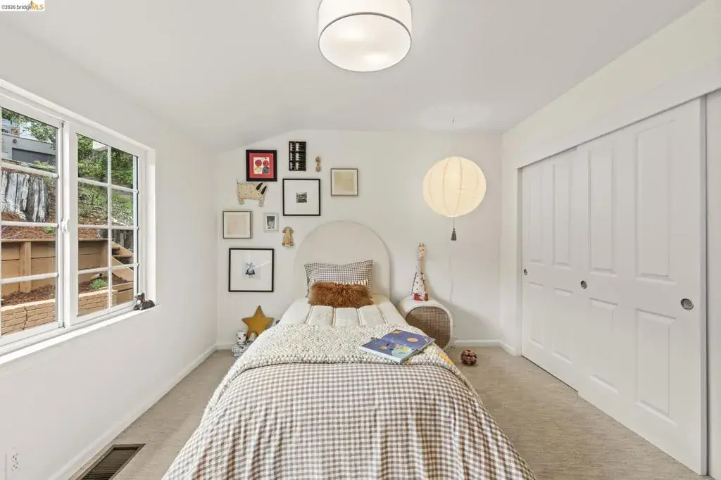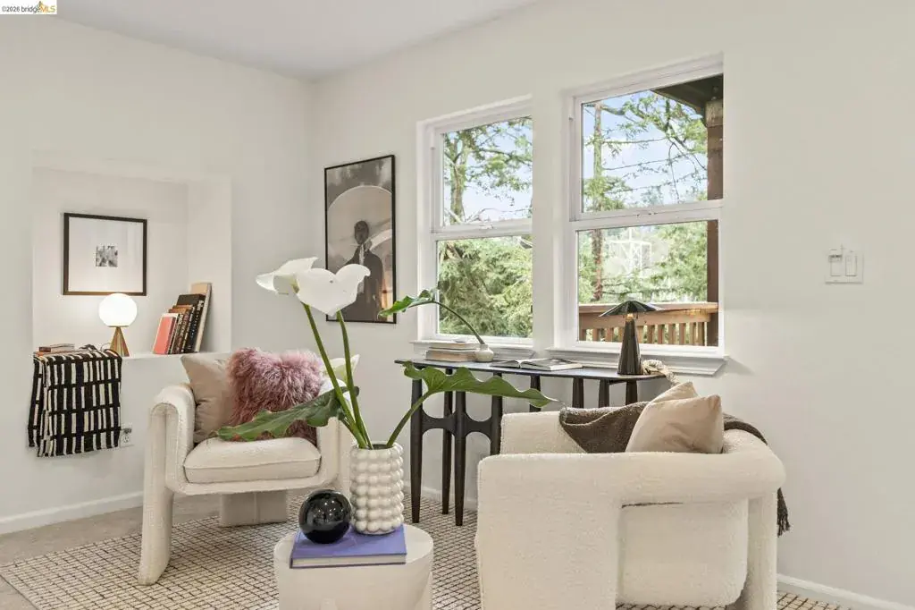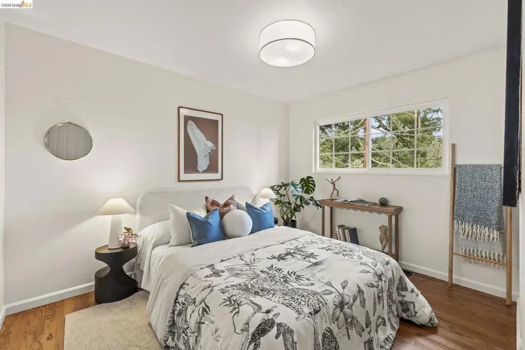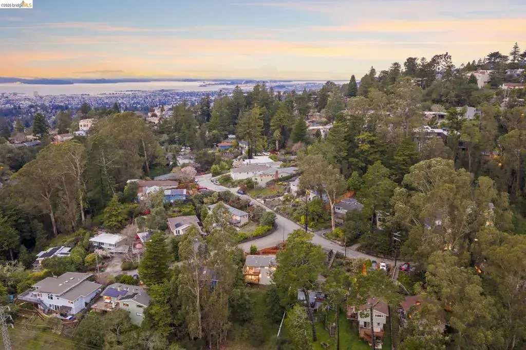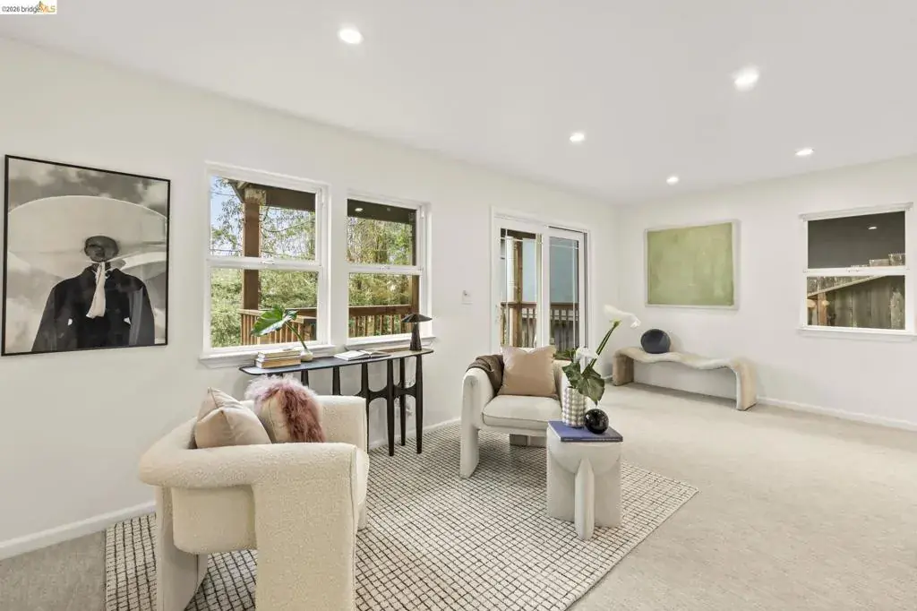 Tucked away on a quiet court in the coveted Montclair Hills of Oakland, this home offers the privacy, charm, and indoor-outdoor living you’ve been dreaming of. Surrounded by mature trees with no rear neighbors, this updated two-story home feels like a serene retreat, with nature framed from nearly every window. The thoughtfully designed open floor plan features hardwood floors, dual-pane windows, a cozy fireplace, and updated modern lighting that adds warmth and sophistication. The main level includes two bedrooms and one bathroom and flows seamlessly to a welcoming front patio and a spacious wraparound deck—ideal for entertaining, dining al fresco, or enjoying peaceful mornings among the trees. The layout offers flexibility and comfort. The primary suite occupies its own downstairs level, creating a true sanctuary complete with a private deck perfect for unwinding. Updated and move-in ready, this home also includes a Tesla electric vehicle charger. Quaint yet contemporary, private yet connected, this home delivers serene views, modern upgrades, and seamless indoor-outdoor flow in one beautifully tucked-away setting.