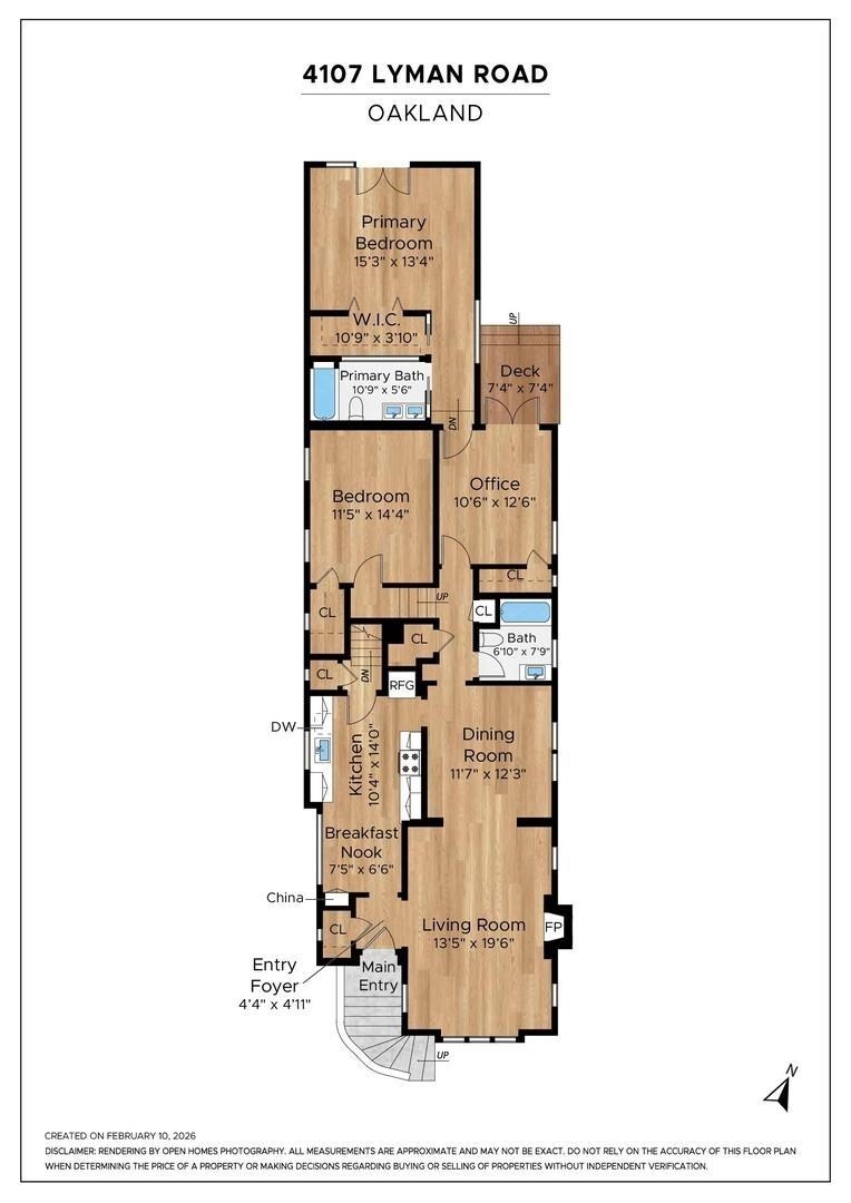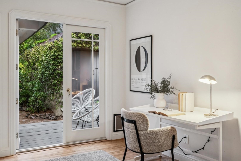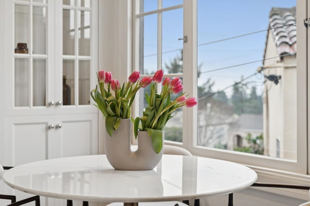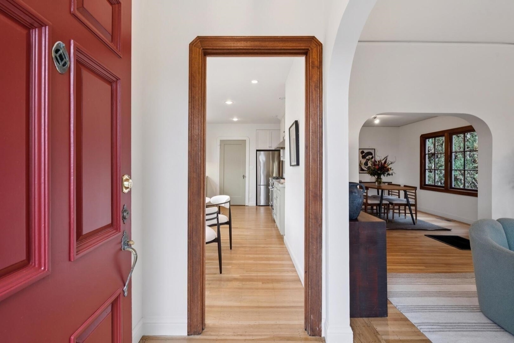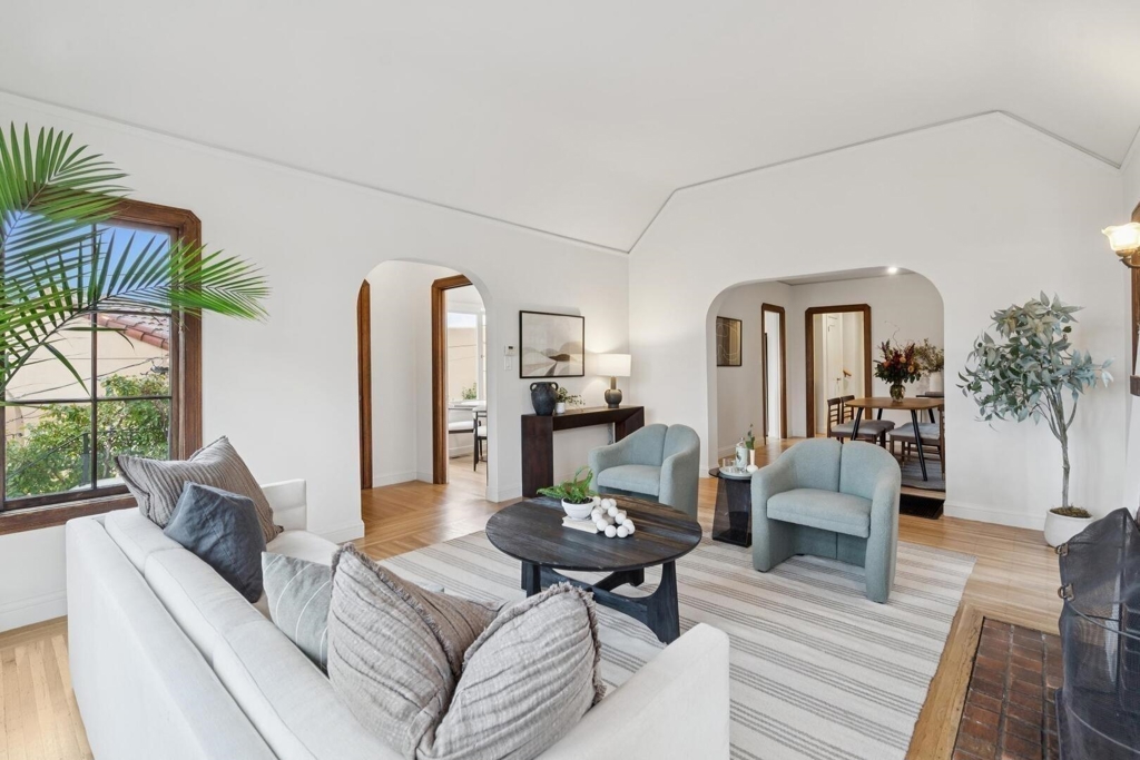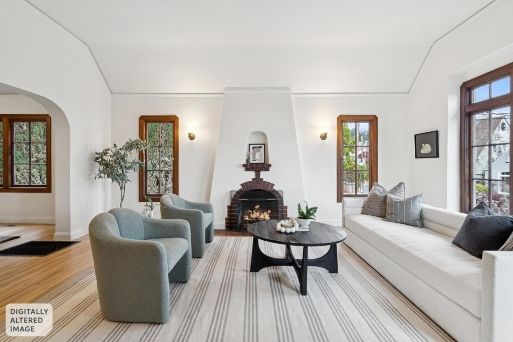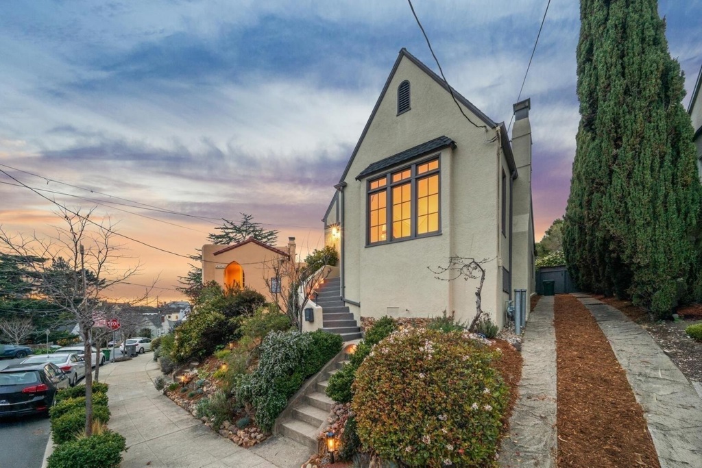 Perched high above the street, this majestic Tudor revival home welcomes you with a gently curved front staircase. Inside, you’ll be charmed by the home’s many architectural details including a vaulted ceiling, brick fireplace surround, large, wood-framed casement windows and original hardwood flooring. A gentle archway separates the living room from the formal dining room, creating a sense of openness while preserving defined spaces. The sunny kitchen has been thoughtfully designed with custom inset wood cabinetry, granite countertops, and hand-finished solid brass hardware. This home features two bedrooms, two and a half bathrooms, and a bonus sitting room/office. French doors off the primary suite open to a lush garden and patio, creating seamless indoor/outdoor flow. A second set of French doors off the sitting room lead to a small deck. A detached garage offers abundant possibilities. 4107 Lyman is ideally situated just moments from the beloved Rocky’s Market. Continue on to Park Boulevard or up to the Montclair district for convenient access to an array of restaurants, shops, and everyday amenities.