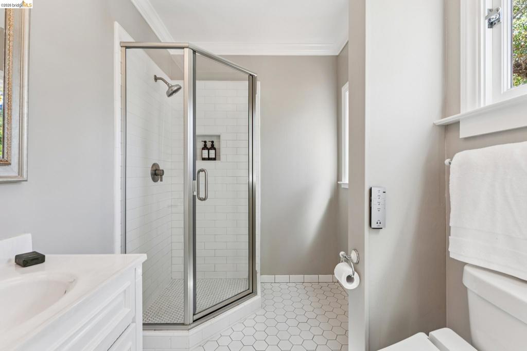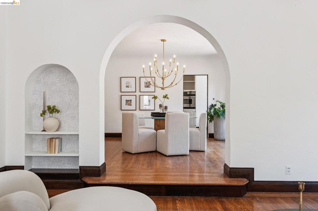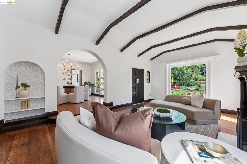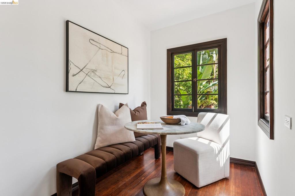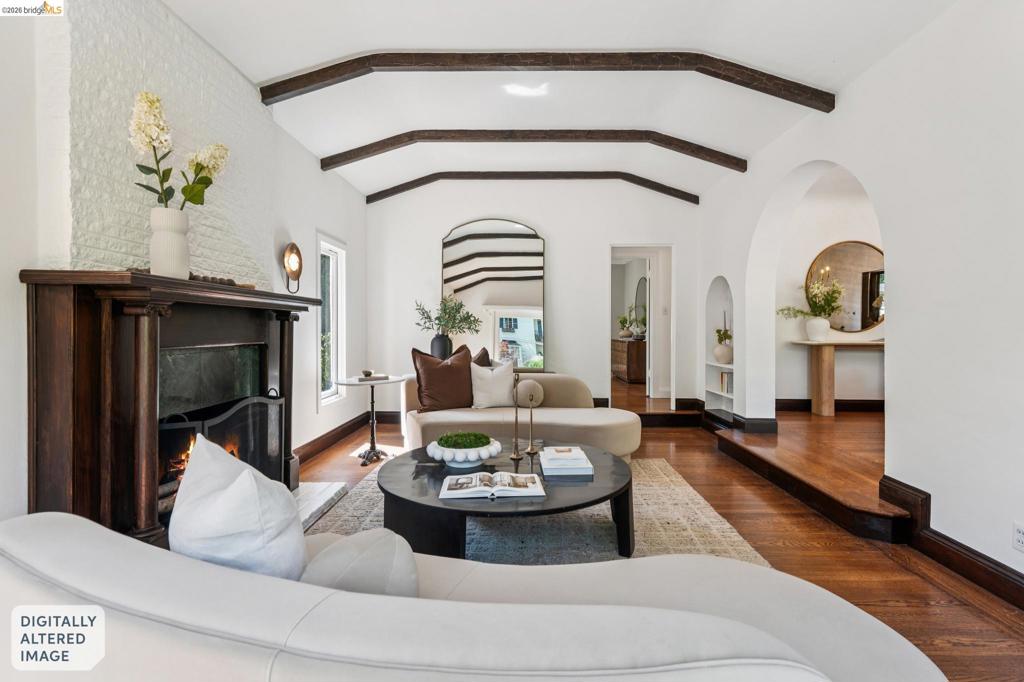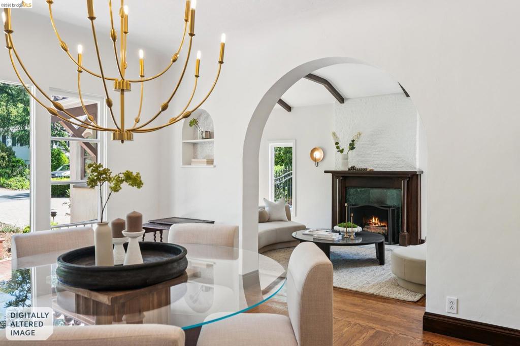 Beloved Mediterranean in coveted Piedmont Pines, just blocks to Montclair Village. This level-in 3BD/3BA home is set within a magical, private garden and offers the best of California living with seamless indoor/outdoor flow—ideal for entertaining, gardening, and play. Dine beneath string lights and a grand oak canopy in the enchanting backyard retreat with 6 fruit trees. The light-filled living room features a coved ceiling with box beams and a cozy fireplace, while the formal dining room overlooks a charming front courtyard. A period-style chef’s kitchen is appointed with oversized windows, custom cabinetry, ample storage, and a delightful breakfast nook. Two bedrooms and two baths are located on the main level. The lower level offers a separate 1BD/1BA suite, both opening to lush, mature gardens—perfect for guests, extended family, or flexible living. Gas line outside for grill. A detached garage, newer paver driveway, and motorized security gate provide convenience and ample parking. Close to top-rated schools, transportation, trails, dining, and shopping.