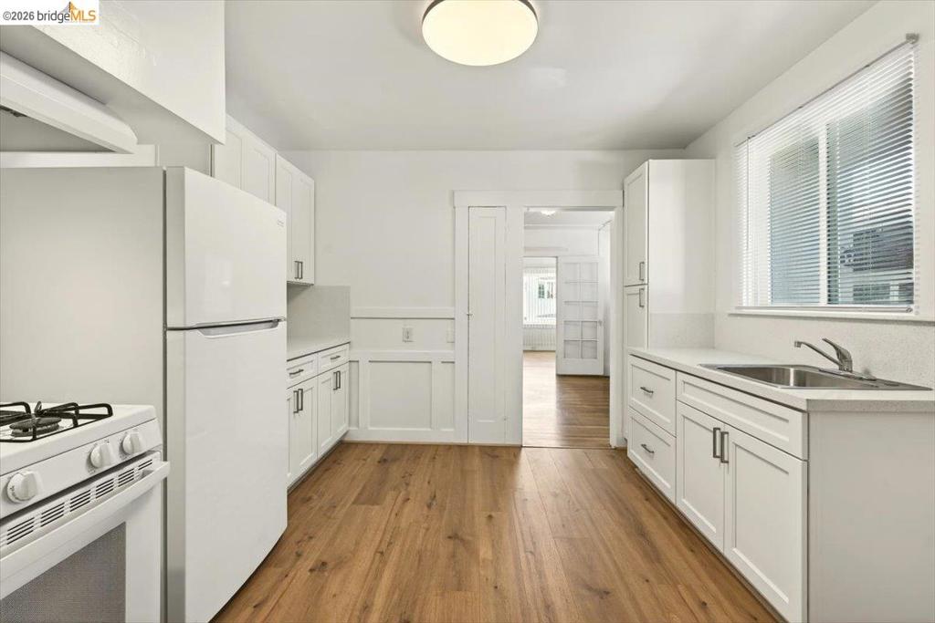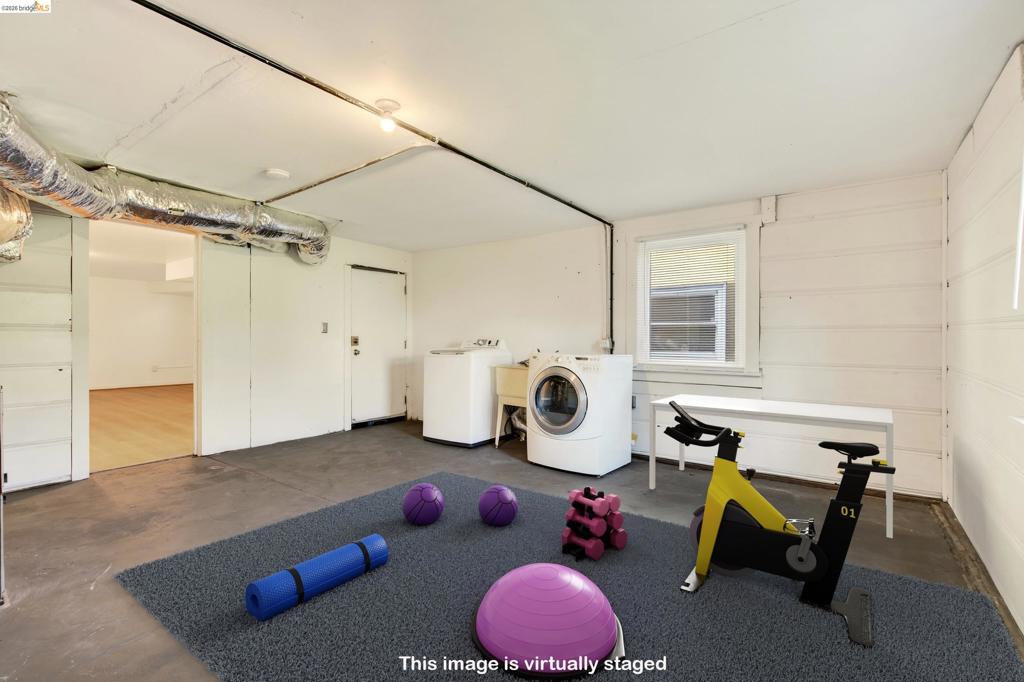 Exciting opportunity to acquire a classic 1920s duplex in the transit-oriented corridor of North Oakland, right on the Emeryville border. This 1,640 sq. ft. property is situated on a generous 4,800 sq. ft. lot. Step inside to find both 1BD/1BA units retaining their original character, featuring refinished hardwood floors and iconic built-in bookshelves flanking a tiled fireplace. The separate dining and living areas provide extensive storage with vintage cabinetry and drawers. The kitchens are functional with updated quartz countertops and white cabinetry. The unique value of these units lies in the expansive lower levels. Both units connect to finished (but unpermitted) basement spaces, offering an excellent footprint for a home office, gym, or creating a Junior ADU—a conversion concept the City of Oakland increasingly supports. These bonus levels link directly to a huge, shared laundry/mudroom with a utility sink and an attached one-car garage. Outside, the large, fully fenced backyard features mature garden beds, a level lawn, and a charming brick-paved patio area. Situated just off San Pablo Ave, you have immediate access to I-80, Berkeley, and the dining/shopping districts of Emeryville.