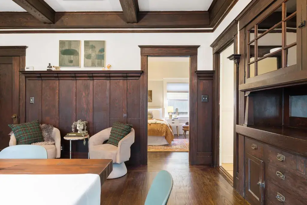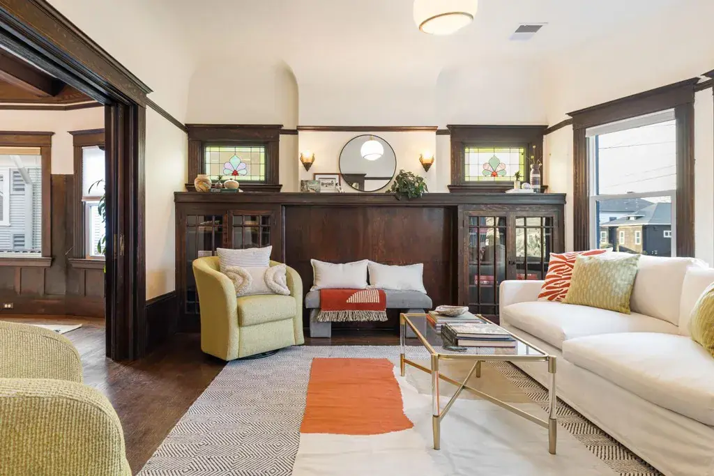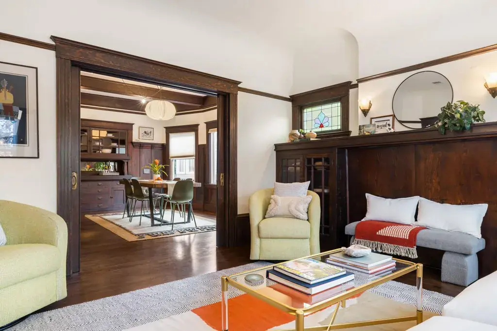 Timeless Beauty: Craftsman Home, Idyllic Street This 3-bedroom, 1-bathroom residence retains the built-in charm of an early 20th century Craftsman, featuring original wood floors, large rooms, a big kitchen, and a large front porch. Some of the beautiful details of this home are the well-designed built-ins, such as the buffet in the dining room, a bookcase in the living room, and pocket doors between the two main areas. Other well-loved features include the stained glass windows above the built-in bookshelves and the leaded glass window in the foyer, along with the extra-wide front door with a sliver of a moon window embedded within. Along with the charm of this home are the modern conveniences of solar panels, dual pane windows, upgraded electricity and plumbing. The office and large family room/bedroom were added in the 1960s. Located on a tree-lined street, the property offers a private retreat with fruit trees, raised garden beds, and a sweet sitting area in the backyard. This ideal location is close to the amenities of Temescal shopping and both Ashby and MacArthur BART stations.