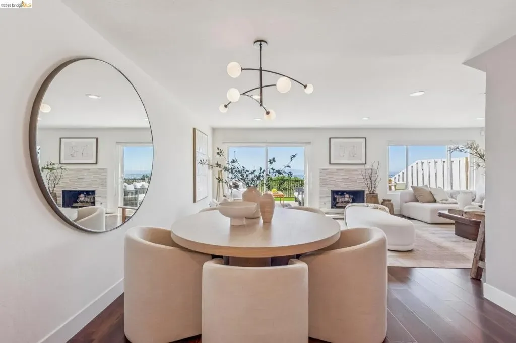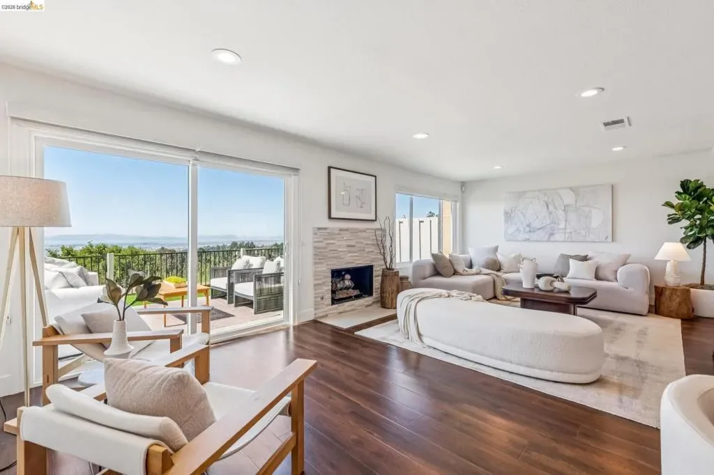 New Listing! Beautifully updated townhome with captivating Bay and San Francisco views in the sought-after Sequoyah Heights development. The thoughtfully remodeled main level features an open-concept layout with seamless indoor-outdoor flow. A warm, inviting living room with a cozy fireplace opens to a spacious dining area, perfect for entertaining or easy everyday living. The updated kitchen offers generous counter space and a breakfast bar, ideal for cooking while staying connected with guests. Sliding glass doors lead to a patio and level lawn where the stunning views unfold offering an ideal setting for morning coffee, unwinding at sunset or dining al fresco. A convenient half bath completes the main level. Upstairs, you’ll find three bedrooms, including a spacious primary suite with vaulted ceilings. The en-suite bath features an oversized shower for a spa-like feel. Two additional bedrooms share a well-appointed hall bath. Enjoy private outdoor spaces and expansive views that make indoor-outdoor living effortless in this exceptional home. Open Sunday 2-4:30