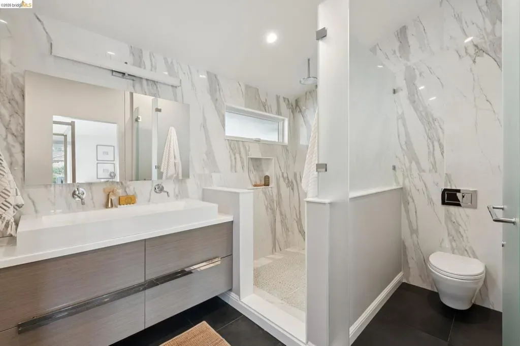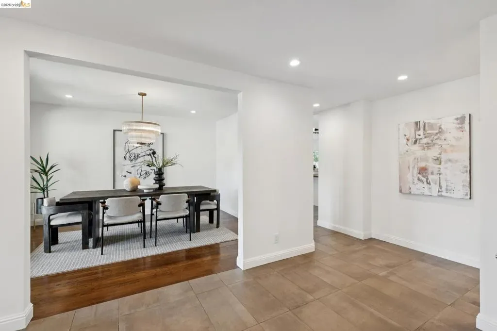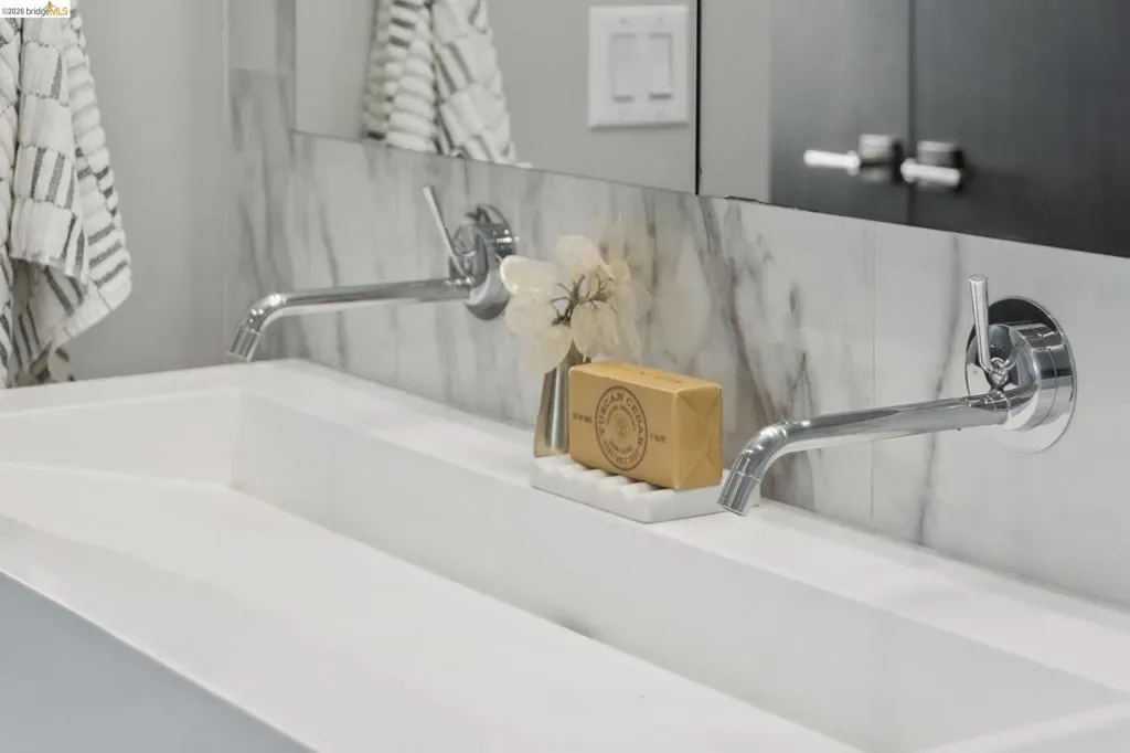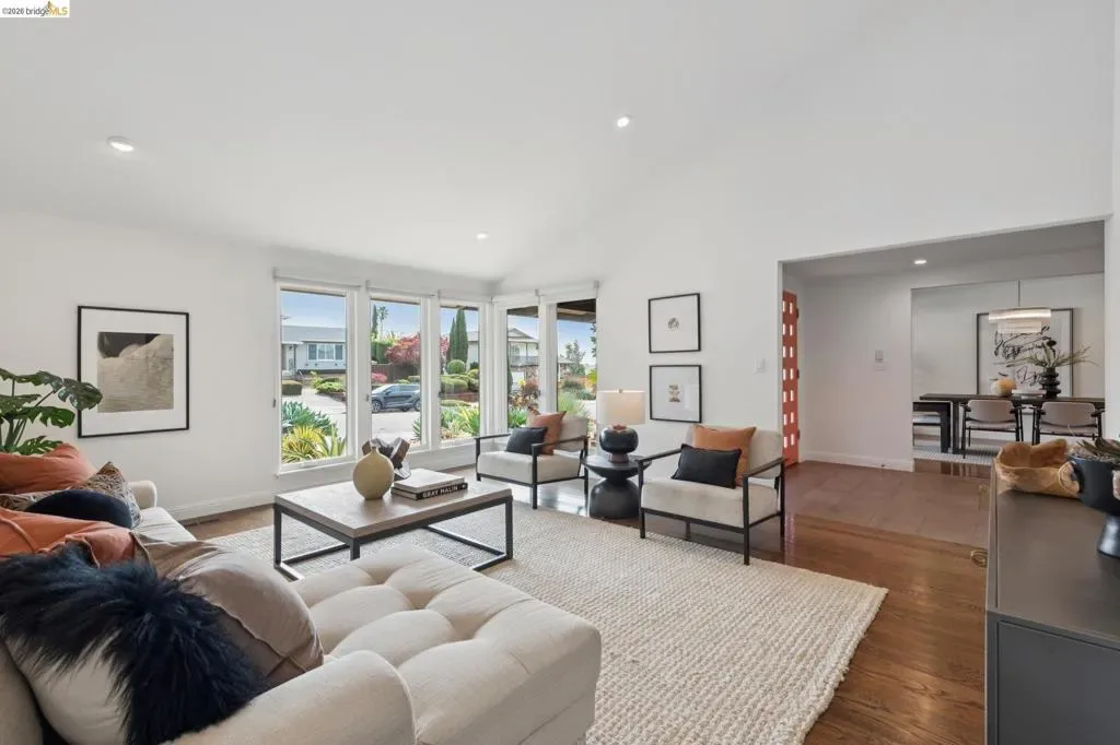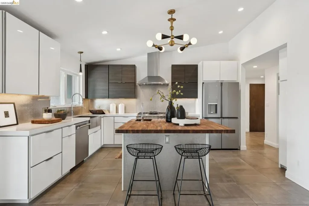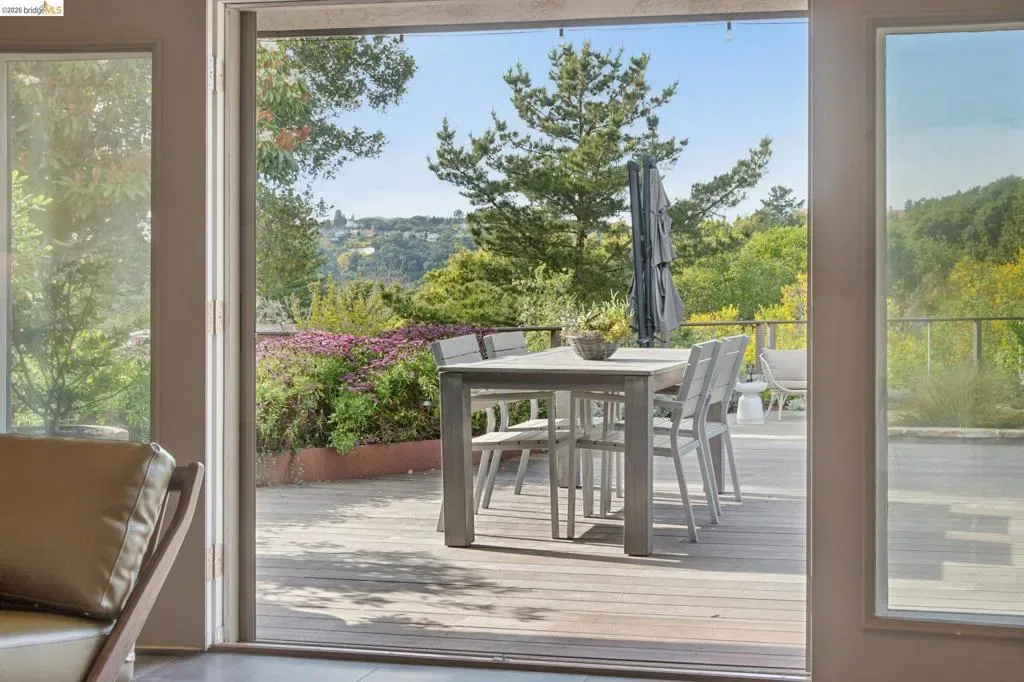 Masterfully reimagined modern gem with sparkling bay views and crystal-blue pool. Spanning 2236 square feet, the home’s level floor plan emphasizes effortless flow and clean architectural lines. The heart of the home is the custom kitchen with premium finishes. The open-concept floor plan connects kitchen with family room, where a tiled fireplace offers a tactile focal point. From here, move outdoors to an impressive private oasis. A broad Batu hardwood deck hosts lounge seating and firepit, and generous dining space. Three steps down, the boldly hardscaped patio features a zen-like swimming pool with integrated spa. Float and gaze at the bay views beyond, or enjoy an outdoor shower. The spacious interior hosts a primary retreat with many fine accents, also offering access the backyard for a midnight dip. Stunning, calming, inviting. Soak in wellness in this Sequoyah Hills sanctuary.