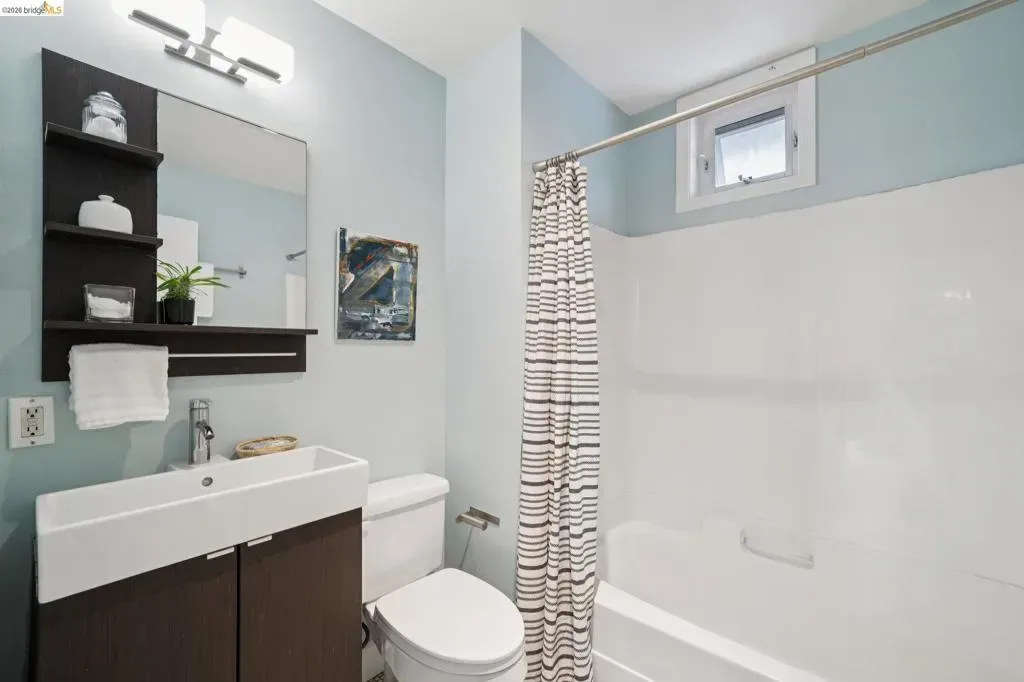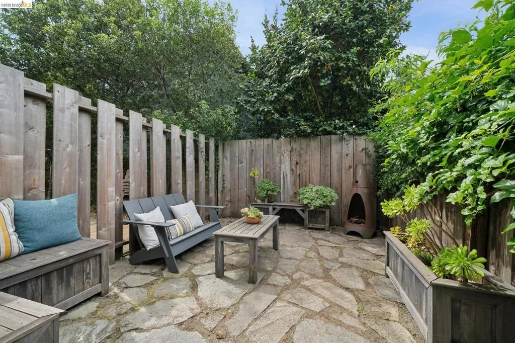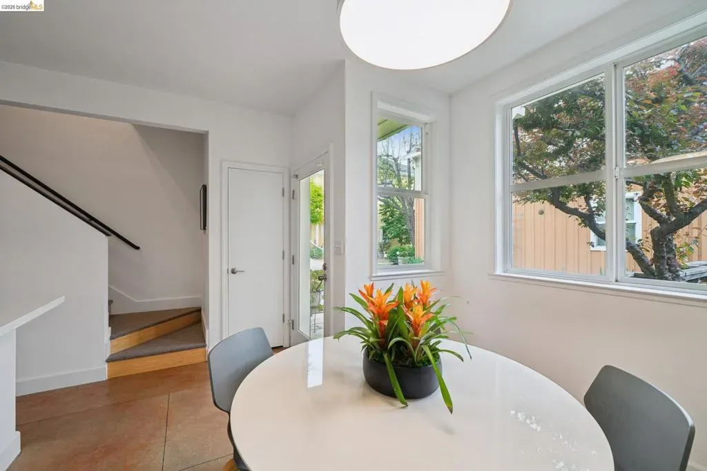 Discover enchanting and modern living at 480 42nd St. Through the gate and blooming bougainvillea, a winding path leads you past verdant community gardens on your way to Unit E. This intentional community of just six homes fosters connections through shared outdoor spaces designed for gatherings. Built in 2000, Unit E is a townhouse-style condo that seamlessly blends contemporary farm-style with comfort. High ceilings, recessed lighting, and stylish finished concrete floors equipped with radiant heating, new wool carpet up the stairs, and bamboo flr in the bdrms. On the 1st floor, the bright, eat-in kitchen is perfect for meals and homework alike. The space creates a peaceful oasis to relax after a long day. There is a half-bath on the ground floor btw the kitchen and the living room. Upstairs, you will find a primary suite with dual closets, high ceilings, and plenty of natural light. Two additional bedrooms and a full bath provide space for family or guests. A pull-down ladder reveals a generous attic space, inviting your expansion dreams*, or just an easy place to store your stuff. In this sunny garden oasis, it’s hard to believe you are just one block from the vibrant Temescal restaurant scene on Telegraph. Truly an urban oasis! *(Buyer to investigate)