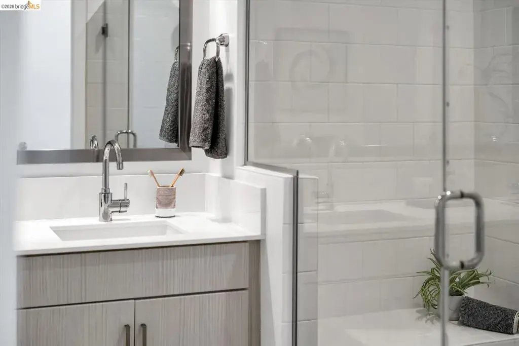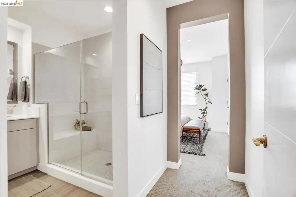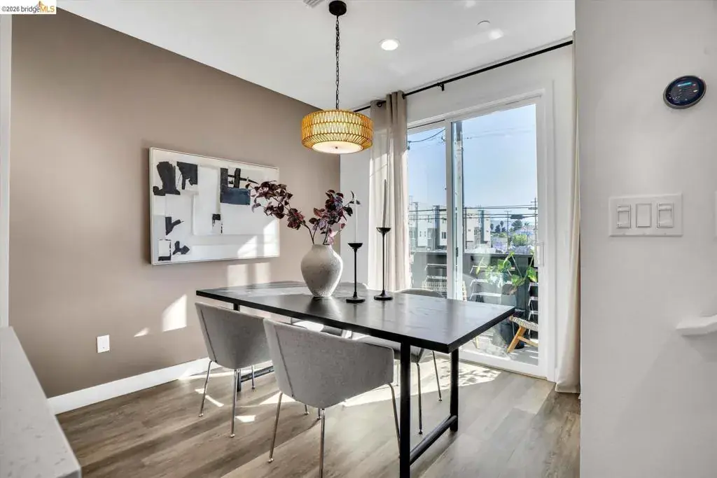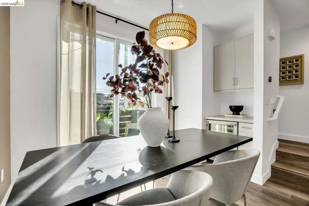 In a neighborhood buzzing with bold eateries, craft breweries, and Oakland’s signature energy, this sleek, sunlit home stands out. The open-concept space flows effortlessly from living to kitchen to dining, all anchored by a chef-ready kitchen with a Bertazzoni Italian oven and Bosch dishwasher. Grab the perfect bottle from the built-in wine fridge and head out to your private balcony for al fresco evenings. Upstairs, both bedrooms feature en-suite bathrooms, offering a rare level of privacy and comfort. Practicality meets tech with bedroom-level laundry, a Nest thermostat, fiber internet, and owned solar panels for sustainable living. Primary suite built for two – double vanities, dual closets, and custom built-ins so there’s room for everything (and everyone). Need space for your car, gym, or storage? The two-car tandem garage flexes to fit your lifestyle. This isn’t just a home; it’s a perfect blend of high-end style and big Oakland energy.