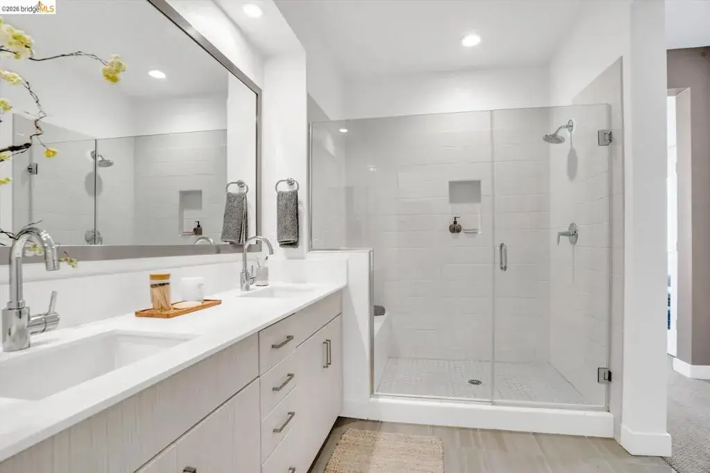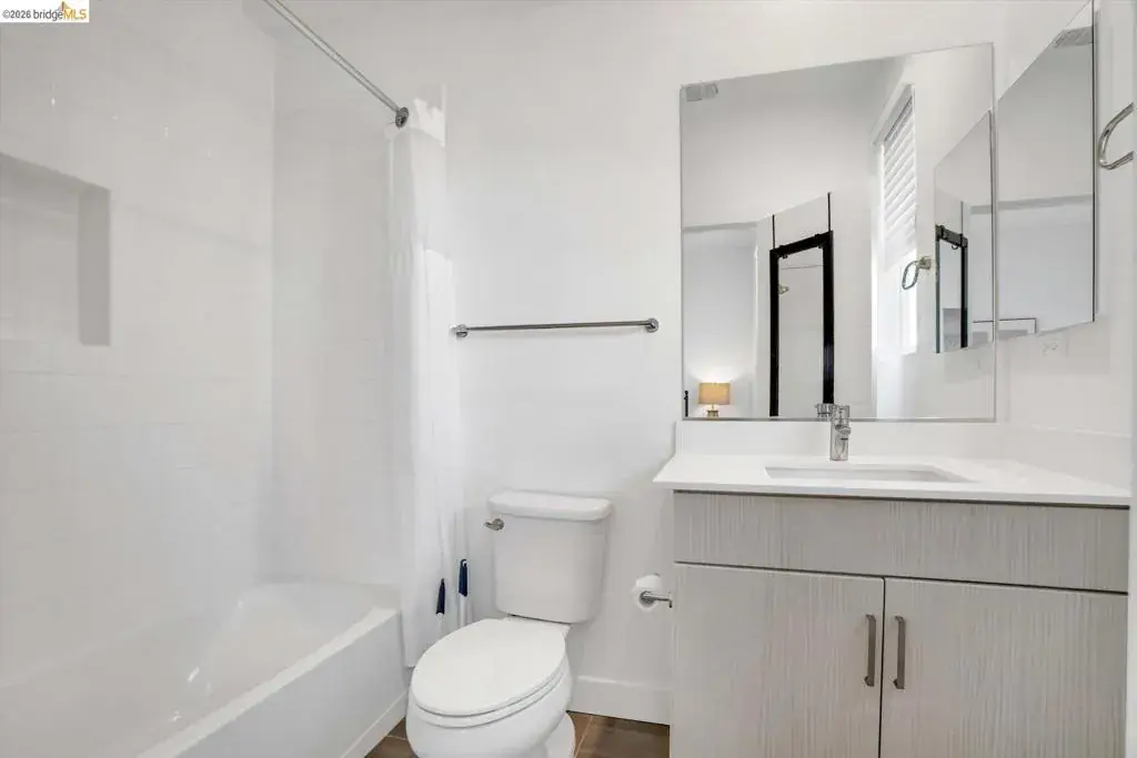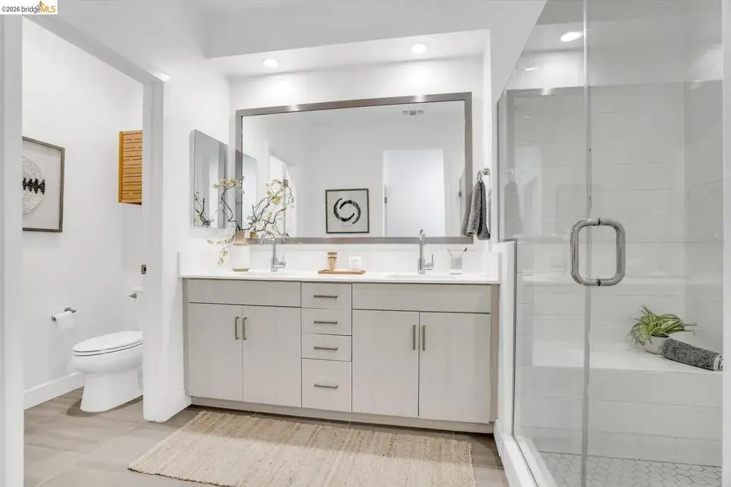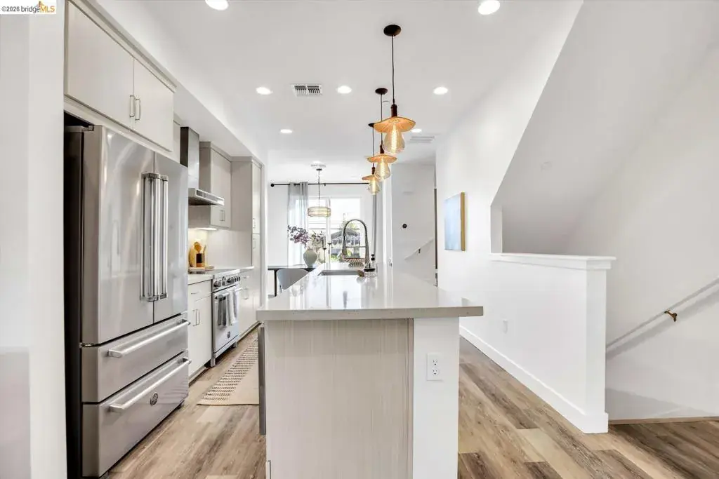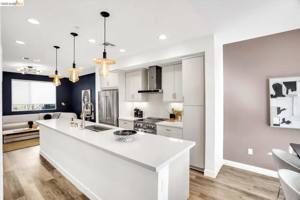 In a neighborhood buzzing with bold eateries, craft breweries, and Oakland’s signature energy, this sleek, sunlit home stands out. The open-concept space flows effortlessly from living to kitchen to dining, all anchored by a chef-ready kitchen with a Bertazzoni Italian oven and Bosch dishwasher. Grab the perfect bottle from the built-in wine fridge and head out to your private balcony for al fresco evenings. Upstairs, both bedrooms feature en-suite bathrooms, offering a rare level of privacy and comfort. Practicality meets tech with bedroom-level laundry, a Nest thermostat, fiber internet, and owned solar panels for sustainable living. Primary suite built for two – double vanities, dual closets, and custom built-ins so there’s room for everything (and everyone). Need space for your car, gym, or storage? The two-car tandem garage flexes to fit your lifestyle. This isn’t just a home; it’s a perfect blend of high-end style and big Oakland energy.