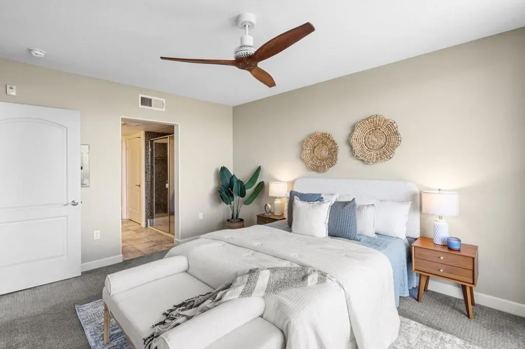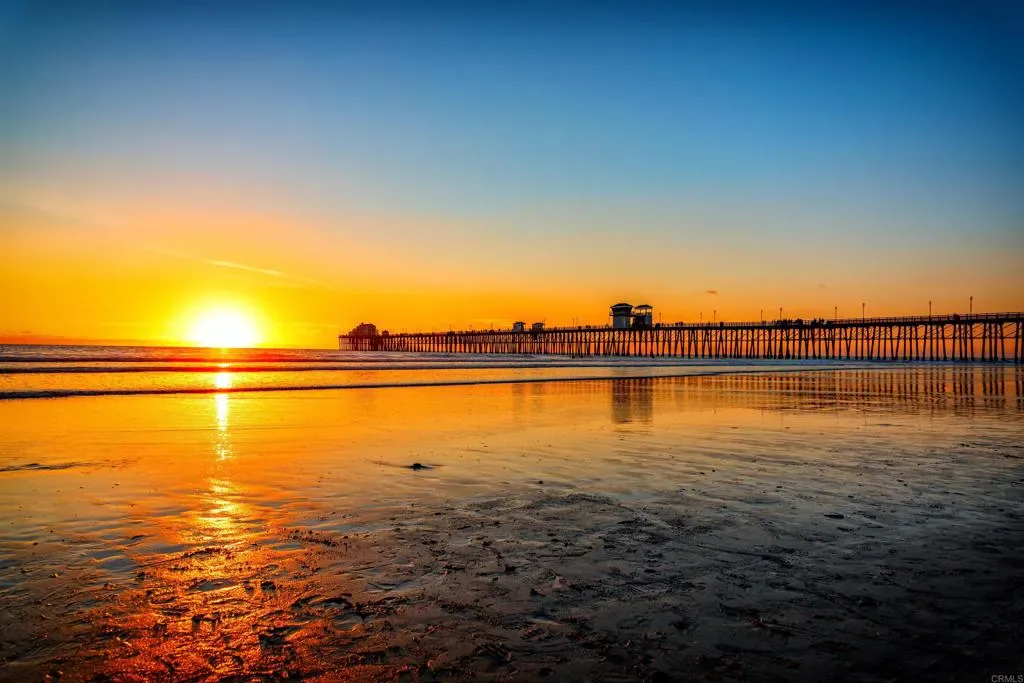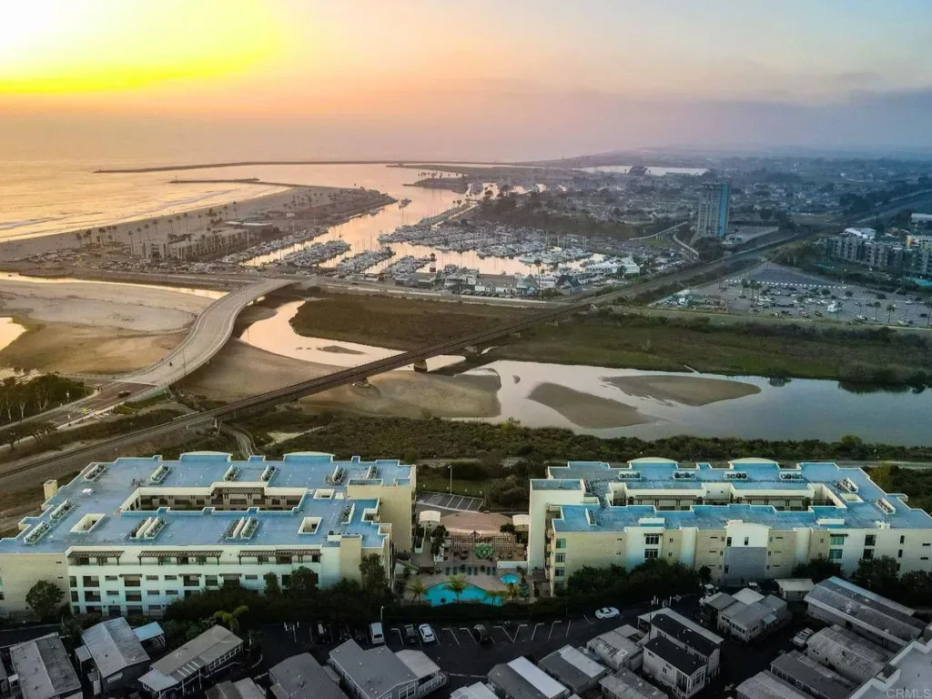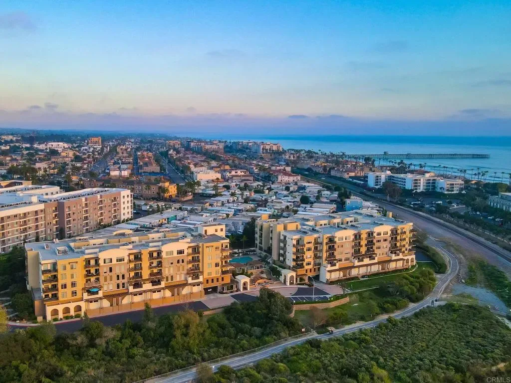 STUNNING OCEAN, SUNSET, HARBOR, POOL VIEWS! CORNER UNIT WITH 3 VIEW BALCONIES–THIS IS IT! Offering 2 bedrooms, 2 baths, and 1,412 sq. ft. of open-concept luxury, this home is designed for those who savor coastal elegance! Unforgettable sunsets—whether you’re in the gourmet kitchen, living room, or your serene primary suite. Each Bedroom has it’s own private balcony. Features include granite countertops, stainless steel appliances, expansive view windows, wood flooring in living area, & huge primary bedroom closet- space to store surf boards or e-bikes. Enjoy Air Conditioning, In-Unit Laundry, and generous closet space. 2 Assigned Parking spaces in Gated Community garage w/ storage. EV Charging stations available in the complex. Set within a gated community w/ resort-style amenities: Elevator, a sparkling pool, hot tub, social lounge, BBQ’s, and fitness center—perfect for embracing the ultimate beachside lifestyle. This is more than a home; it’s your own slice of coastal paradise, blending luxury and laid-back beach living seamlessly. Don’t miss this rare opportunity! Located west of Coast Highway, the community borders a 9-mile bike trail along the San Luis Rey River—perfect for embracing the Southern California lifestyle in the thriving hotspot of Oceanside! Walking distance to beaches, restaurants, the pier, the strand, bike trails, and harbor activities, this Oceanside condo is perfectly situated between San Diego and Orange County. It offers easy access to popular destinations and attractions like Legoland, the Wild Animal Park, SeaWorld, and Disneyland—all while enjoying the beautiful Southern California beaches. The nearby train station provides convenient transportation to Orange County, LA, or San Diego, making it ideal for commuters. Unique opportunity only 4, 2-bedroom units exist in the building with this end unit location- Views from EVERY room + THREE private balconies – Premium 3rd floor residence location.