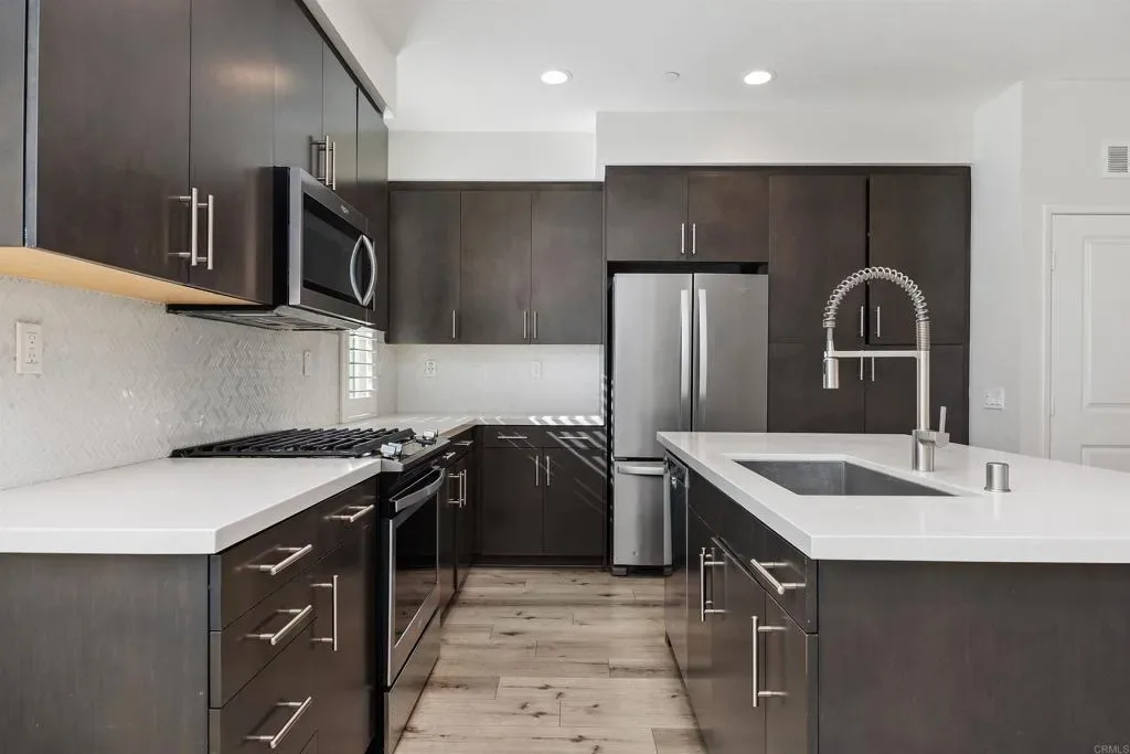 Experience modern coastal living in this beautifully updated 4 bed, 4 bath townhome in the Pacific Ridge gated community of Oceanside. Built in 2018, this three-story home offers an entry-level bedroom with full bath, an open-concept main level with a modern kitchen featuring quartz countertops and stainless-steel appliances, and a spacious balcony perfect for outdoor relaxation. The top floor includes a bright primary suite with a walk-in closet and dual-vanity bath, plus two additional bedrooms and a full bathroom. Additional features include an attached two-car garage, air conditioning, and a pet-friendly environment. Pacific Ridge residents enjoy resort-style amenities such as a pool, spa, playground, and BBQ areas—all within the desirable Oceanside School District and close to shopping, dining, and beaches.