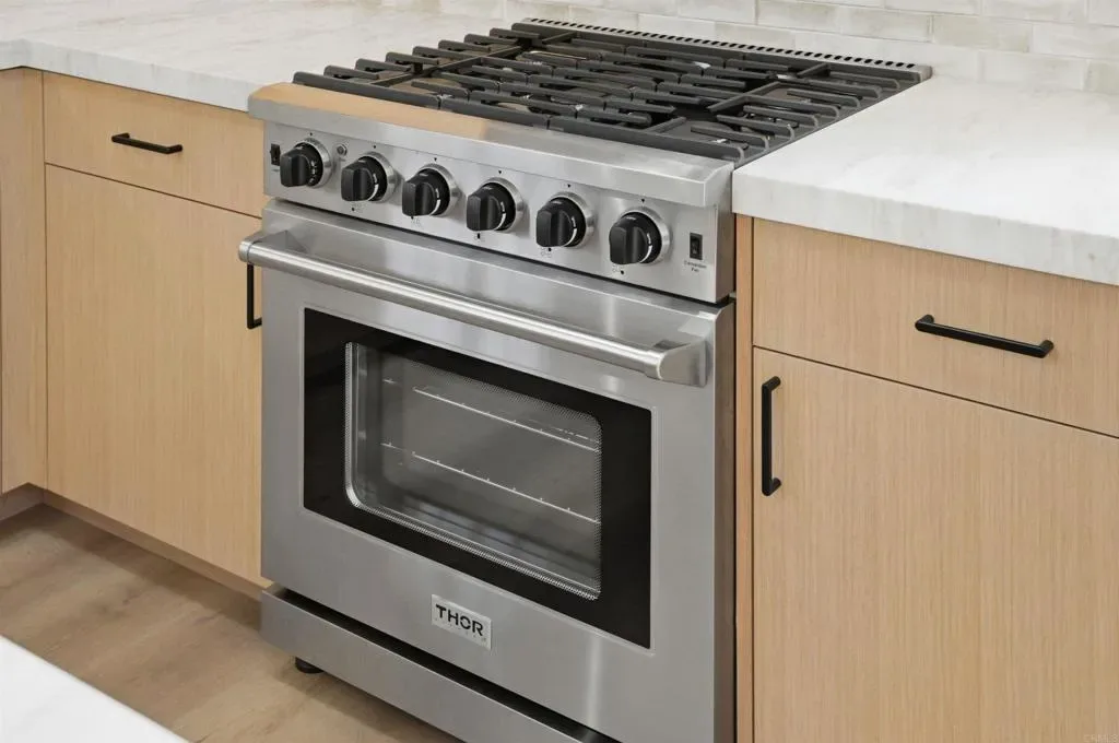 Experience the perfect blend of modern design and coastal lifestyle in this beautifully upgraded Fire Mountain home in South Oceanside. Thoughtfully renovated throughout, the residence showcases wide plank flooring, smooth textured walls, custom built-ins, and an abundance of natural light enhanced by skylights and dual-pane windows. The heart of the home is a stunning chef’s kitchen featuring custom white oak cabinetry, leathered quartz countertops, a spacious island, and premium appliances including a 48-inch built-in KitchenAid refrigerator and Thor 5-burner gas range. Both bathrooms have been tastefully remodeled, highlighted by a spa-inspired primary suite with custom cabinetry and designer finishes. Situated on an oversized lot, the property offers incredible flexibility with space for a potential ADU, home office, pool, or sport court—ideal for today’s evolving lifestyle needs. Additional upgrades include owned solar, new fencing, updated landscaping, modern lighting, and a finished laundry room with custom storage. Enjoy the best of South Oceanside living—just minutes from pristine beaches, award-winning craft breweries, and the vibrant South O district, known for its artisan coffee shops, farm-to-table dining, and lively coastal energy.