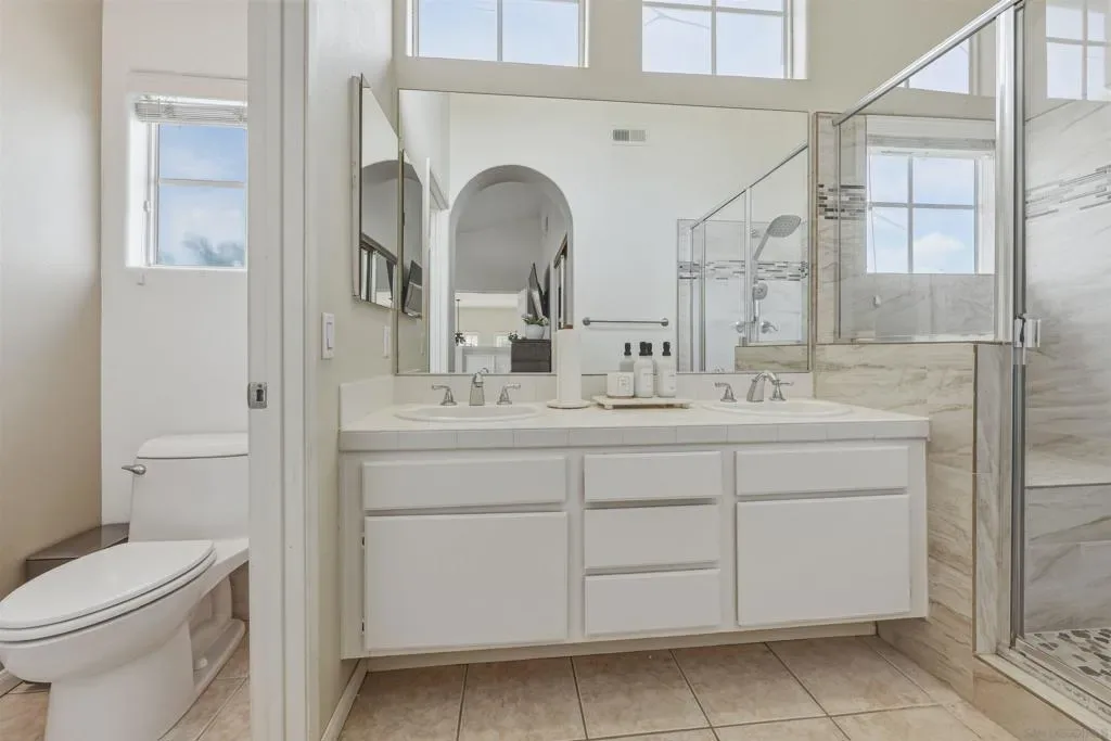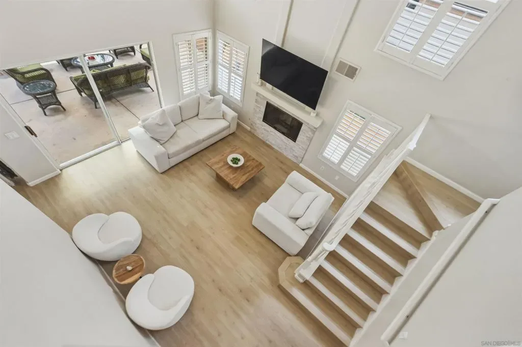 Welcome home to this beautiful Rancho Del Oro Villages II property, surrounded by walking trails and a, well-kept neighborhood. This home features one of the largest backyards in the community, complete with a covered patio and plenty of space for family, pets, and outdoor entertaining. New flooring has been added on the first floor and stairwell. The fully remodeled downstairs bathroom adds fresh style and convenience for guests. The kitchen has been tastefully maintained with granite counters, newer cabinets, stainless steel appliances, and a newer gas stove and microwave. Enjoy a breakfast bar and a spacious dining area that flows into the living room, which offers two-story ceilings, plantation shutters, wood flooring, and a cozy fireplace—bright, open, and airy throughout. Upstairs, the primary suite offers a peek view, room for large furniture, a walk-in closet, dual sinks, and a new walk-in tile shower. A Jack-and-Jill bathroom connects the two additional bedrooms.