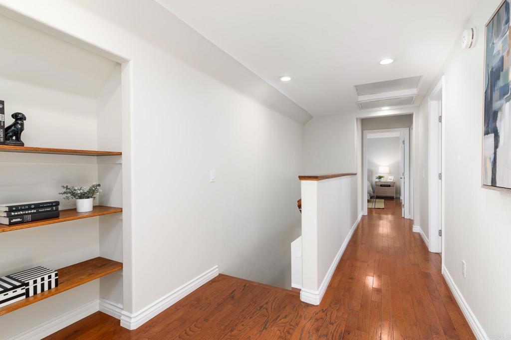 Welcome to this beautifully remodeled and thoughtfully designed 4-bedroom, 4.5-bath residence offering an exceptional blend of comfort, flexibility, and seamless indoor-outdoor living in one of Oceanside’s most desirable neighborhoods. A charming picket fence and cheerful turquoise front door create unforgettable curb appeal, setting the tone for the character and warmth found throughout. Inside, warm hardwood floors, recessed lighting, and clean architectural lines create a bright yet inviting atmosphere. The updated kitchen is both stylish and functional, featuring quartz countertops, blonde cabinetry, stainless steel appliances (including a refrigerator, microwave, oven, range, and wine fridge), a walk-in pantry, and a built-in desk area. The space flows effortlessly into the dining area, highlighted by a striking wooden accent wall that adds warmth and texture. Designed for flexibility, the home offers four bedrooms, including two primary suites, and four-and-a-half bathrooms. The downstairs primary suite features a spacious walk-in closet and a luxurious ensuite bath with dual vanities, an oversized standalone shower, and a built-in soaking tub. Upstairs, the second primary suite also includes a walk-in closet and a recently updated ensuite bathroom with dual vanities and an oversized shower with a built-in bench. Each additional bedroom is generously sized with its own bathroom, while a convenient powder room serves guests. The private backyard is beautifully landscaped and designed for both relaxation and entertaining, with a covered patio, multiple seating areas, and mature greenery creating a peaceful, resort-like setting. Solar panels add energy efficiency and long-term savings. Ideally located near beaches, shopping, dining, and everyday conveniences, this move-in-ready home offers comfort, character, and thoughtful upgrades throughout.