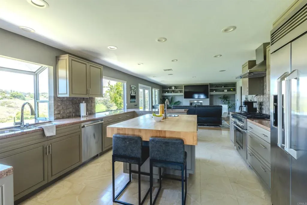 RARE COASTAL ESTATE ON EL CAMINO COUNTRY CLUB Experience unparalleled privacy and scale on the premier corner lot of the exclusive El Camino Country Club. This highly upgraded 2,900-square-foot residence sits on a massive 1.5-acre lot—an expansive private oasis that is nearly impossible to find in this coastal corridor. Situated on a quiet cul-de-sac with no HOA, this home offers a front-row seat to sunrises and sunsets with unobstructed and protected views of the El Camino golf course, rolling hills, and the ocean beyond. The journey begins through professional landscaping and a private gated courtyard, creating a serene entry to a home positioned 100+ feet above the tranquil putting grounds of the Back Nine. Inside, tile and beautiful hardwood floors run throughout the open-concept layout, connecting the dining room, family room, and living room to the spectacular panoramic scenery. The gourmet kitchen features a 36-inch Thermador range, built-in Sub-Zero refrigeration, modern cabinetry, and a textured 3D backsplash. A sophisticated cocktail bar, expansive granite countertops, and a grand butcher-block island with a wet bar provide the ideal centerpiece for hosting. The main level includes a versatile bedroom and guest suite with a Jack-and-Jill bathroom, ideal for a professional home office or multi-generational living. The upper level features dual primary suites among the total of four bedrooms and four bathrooms. The main primary retreat offers spectacular views from every window, a private outdoor balcony to savor the ocean breeze, a custom walk-in closet, and a spa-inspired ensuite equipped with top-tier Hansgrohe and Kohler fixtures. A secondary primary suite with its own private bath and walk-in closet ensures comfort and luxury for all residents. Practicality meets prestige with a three-car garage, an expansive driveway, a dedicated laundry room, and separate high-end central air conditioning units for both levels. Located just minutes from the 78 and I-5, you are a short drive from Carlsbad beaches, Oceanside Pier, and world-class shopping. The expansive 1.5-acre wraparound lot serves as a premier canvas for a custom estate expansion, offering ample space for a resort-style pool, a private guest casita, or an ADU, all while preserving those legendary, unobstructed views for a lifetime.