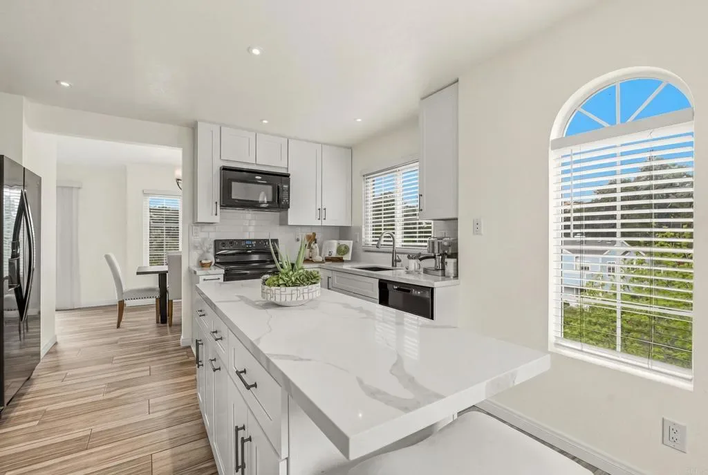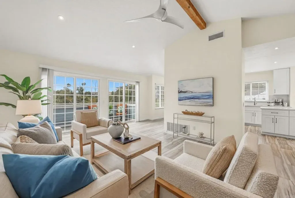HONEY, STOP THE CAR… this is the one. Tucked into one of the most desirable spots in the community, this rare end-unit townhome sits quietly at the end of a cul-de-sac in the serene Fire Mountain enclave of Ocean Village. From the moment you walk in, it feels different—private, peaceful, and thoughtfully upgraded for effortless coastal living. Inside, every detail has been elevated. Beautifully remodeled bathrooms with high-end finishes, a sleek walk-in shower, fresh paint, and newer appliances create a clean, modern feel. The cozy gas fireplace anchors the living space, while an upstairs skylight pours in natural light, giving the home a warm, welcoming glow throughout. Step outside and you’ll find two private patios—one off the living room and another off the primary suite—perfect for morning coffee or winding down at sunset. Newer sliding glass doors and windows, complete with a transferable warranty, bring in the breeze while adding comfort and value. Set above it all, the community offers a hilltop pool and recreation center, along with beautiful Fire Mountain views that remind you daily why you live here. And just minutes away—beaches, farmers markets, shopping, dining, and live music. This isn’t just a home… it’s a lifestyle you won’t want to leave.