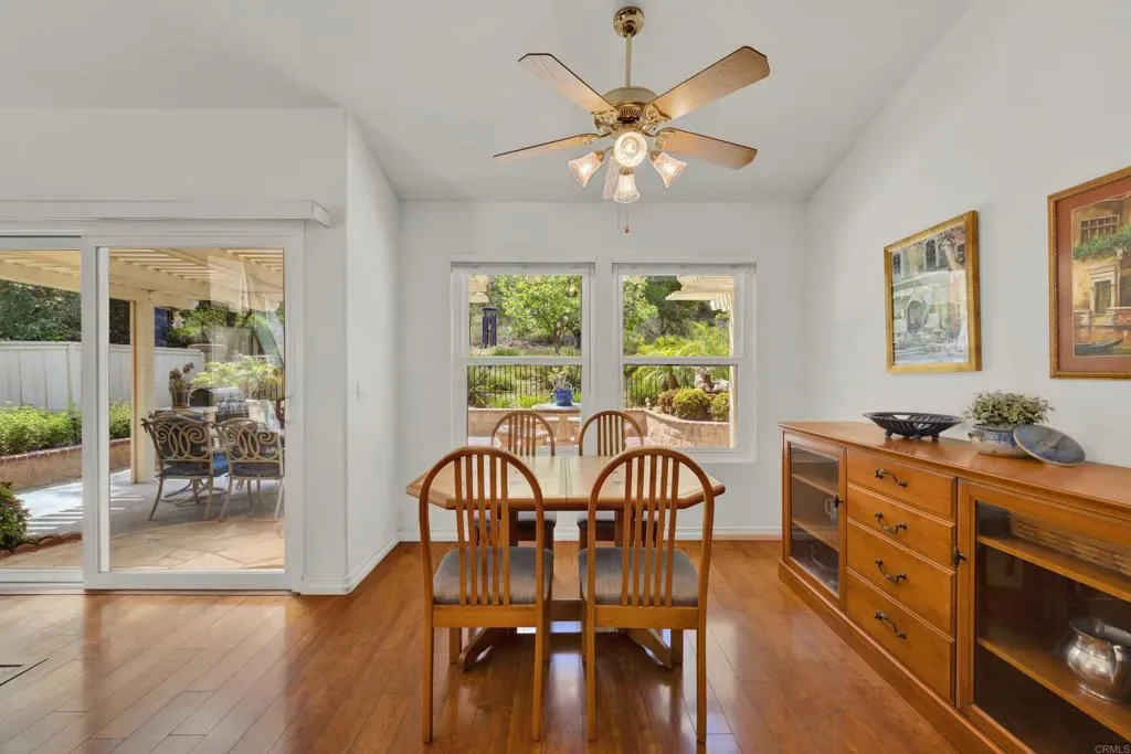 First time on the market, this one-owner home has been exceptionally well maintained and offers the ease of single-story living with no interior steps. Located in the popular and friendly Ocean Terrace gated community, this home features vaulted ceilings and an abundance of natural light throughout the formal living and dining areas, family room, and primary bedroom too! The refreshed kitchen showcases updated cabinetry, granite countertops, generous prep space, and a large breakfast bar, with all appliances included. Ideal for both entertaining and everyday living, the kitchen flows seamlessly into a separate casual dining area and a spacious family room complete with a fireplace and built-in media center. Offering four bedrooms, one is perfectly suited for use as a home office or den, providing flexibility to fit your lifestyle. The spacious primary suite offers vaulted ceilings, a walk-in closet, and a glass sliding door leading to a sunny patio. The en-suite bath includes a walk-in shower and a private commode area for added comfort. Beautifully landscaped with two fountains and a built in BBQ… the front and back patios provide inviting outdoor spaces, while the low-maintenance backyard backs to a lush and private greenbelt area! Additional highlights include your own SOLAR, a tankless water heater, and recently repiped copper plumbing for enhanced efficiency and peace of mind. Conveniently located just minutes from the ocean, pristine beaches, the scenic Calavera Preserve, and an abundance of walking trails, hiking, golfing, dining, and more! This home truly offers the lifestyle you’ve been waiting for and could easily be your forever home!