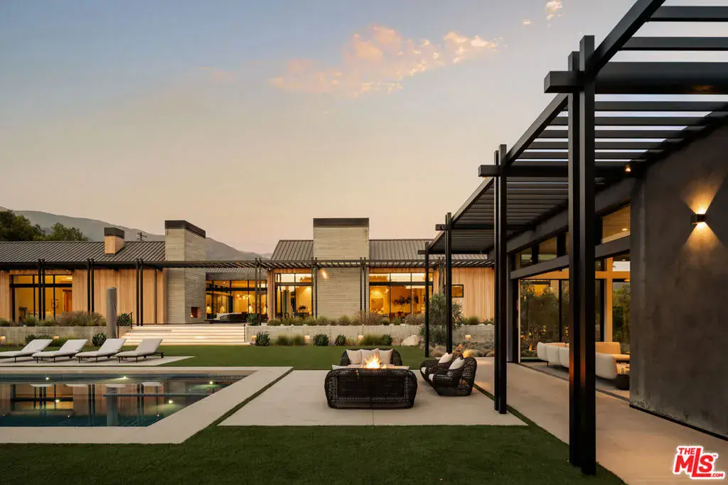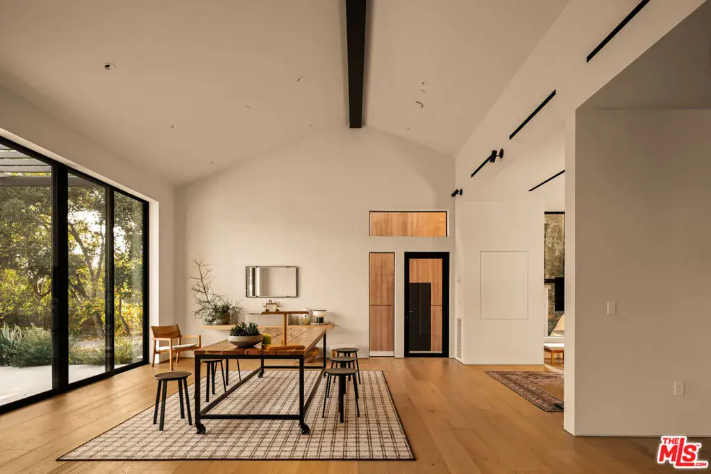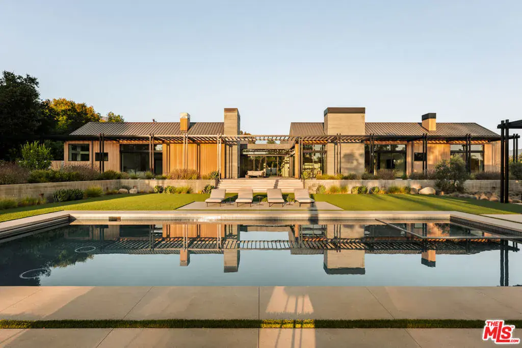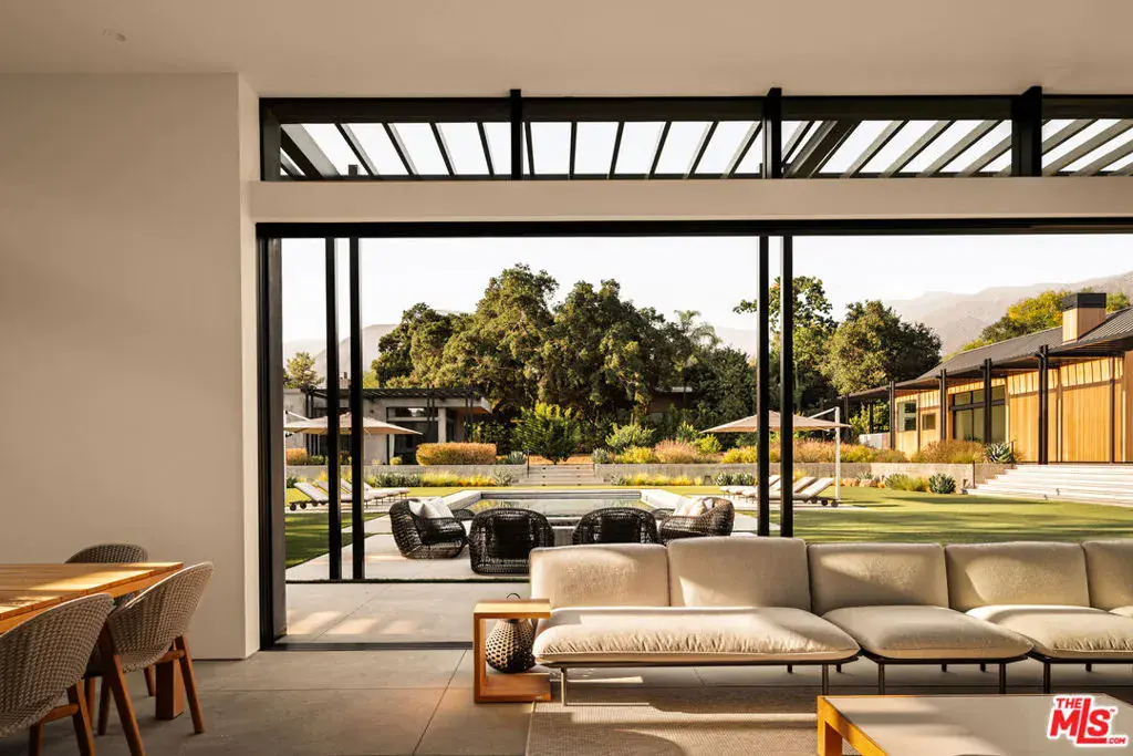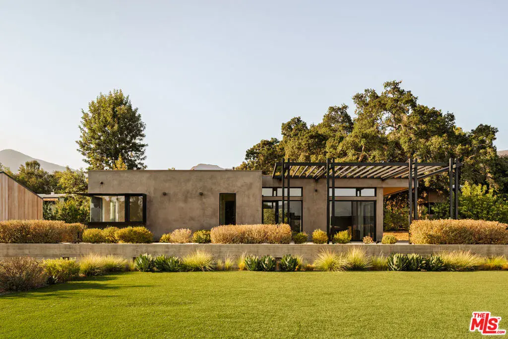 Sited on over 2.2 flat acres in prime Ojai Valley, The Shippee Estate is a rare opportunity to own a newly constructed architectural farmhouse compound featuring the highest level of finish and design in a uniquely serene setting. A product of 4 years of meticulous design and building by one of the country’s most prolific builders, the estate features single-story living throughout its Main Residence, Guesthouses, Cabanas, and Workshops. This private retreat features 12-20ft ceilings, walls of glass, grand scale, perfect for entertaining, hosting, and living on all scales. The grand entry features a 12ft pivot door guiding you into an open-concept living space, with soaring ceilings and walls of glass that frame the surrounding landscape and zen-inspired courtyard featuring olive trees and native landscaping. Natural light floods the interiors, creating a seamless transition from the large public spaces to the grounds and outdoor spaces beyond. Premium materials and finishes are showcased throughout, including wide-plank white oak flooring, sandblasted limestone, imported Calacatta marble, and a chef’s kitchen outfitted with professional-grade Miele, Wolf and Subzero appliances. The exterior is clad in warm cedar wood siding, enhancing the home’s architectural character and blending seamlessly with the natural surroundings. Lighting and fixtures sourced from renowned designers Apparatus and Rejuvenation, further elevating the home’s modern elegance with refined detail. Every element reflects a commitment to quality and craftsmanship, resulting in a residence that is both timeless and enduring. Interior features of the Main Residence include a resort-style primary suite, boutique-inspired walk-in closet, and spa-like bathroom with an additional private outdoor shower and garden. A secondary primary suite features soaring ceilings, cozy fireplace, and a sublime bathroom featuring soaking tub and rainfall shower. Featuring a thoughtful layout, the guest bedroom suites are complete with custom millwork, en-suite bathrooms, and serve as the perfect retreat for family and friends. Perfect for generational living or as the quintessential weekend or seasonal retreat, this is a true compound, featuring a variety of auxiliary structures such as a pool cabana, entertainment pavilion with indoor-outdoor kitchen s, outdoor kitchen, self-contained guest house, expansive studio space and additional detached garages. Primed for any car enthusiast, the home features finished garage spaces for … cars with the height to support lift systems for additional vehicles. Outdoor amenities include various gardens, spacious patios ideal for entertaining, outdoor kitchen, high-quality and drought resistant turfed lawn, a resort style pool and spa, and lushly landscaped grounds. The property’s flat acreage offers versatile potential, while its elevated position ensures year-round views of Ojai’s iconic mountain backdrop. Located just minutes from downtown Ojai, residents will enjoy ideal proximity to hiking trails, renowned dining and boutiques, The Ojai Valley Inn, and a thriving arts community. 1225 Shippee Lane is more than a home – it is a refined retreat offering the ultimate in resort-style living in one of the West Coast’s best destinations.