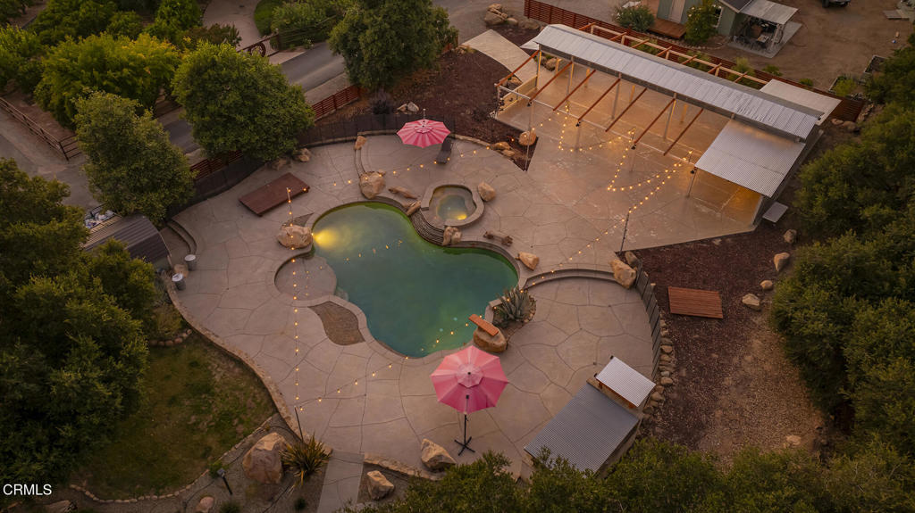 Welcome to your private Ojai retreat. Set beneath the majestic Topa Topa Mountains, this nearly two-acre Ojai compound offers an extraordinary blend of privacy, luxury, and thoughtful design.Situated amongst mature trees and tasteful landscaping, the main residence is warm and inviting boasting 4 bedrooms, 3 bedrooms, stone and wood details, generous windows, and mountain views throughout.A separate two-bedroom, two-bath guest house offers privacy and flexibility–perfect for hosting visitors or for use as an income-generating rental. At the heart of the property, a striking 2,400-square-foot open-air barn invites entertaining on any scale, from intimate gatherings to grand celebrations.Additional features include a 900 sq ft workshop with full lighting and electrical, a 150 sq ft secondary workshop, and two spacious storage sheds (160 & 200 sq ft). A deluxe dog run with artificial turf completes this exceptional estate, offering comfort and convenience for your four-legged companions.The resort-style backyard features a sparkling pool and spa set among native boulders, multiple al fresco dining areas, a custom fire pit, a full outdoor kitchen with BBQ/smoker and wraparound bar–perfect for effortless, year-round entertaining.Whether enjoying coffee on the private upstairs balcony or lounging by the pool, every element of this property evokes the relaxed, soulful charm of Ojai.This rare Ojai real estate offering is a retreat like no other, surrounded by nature yet minutes from town. Don’t miss the opportunity to own a home that invites you to slow down, settle in, and savor the essence of Ojai.