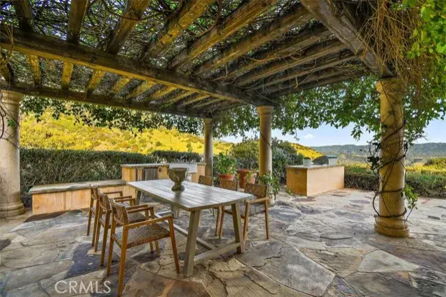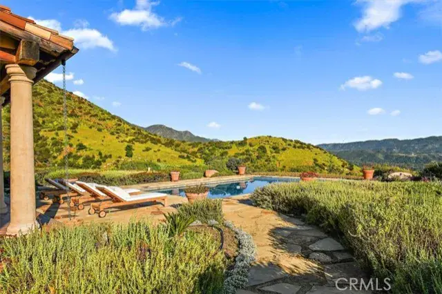 A truly rare opportunity inside the prestigious, gated, and historic Hermitage Ranch. The moment you enter this exceptional 47-acre estate, you feel the serenity and seclusion that make this property so special. This is a true retreat, a resort-like setting with two large homes, both perfectly positioned to take in the sweeping mountain and valley views that make Ojai such a magical place. The main house (2835 Hermitage) is 4466sqft 5bd/5ba or 4bd/office) and the guest house (2833 Hermitage) is 2396sft 3bd 3ba. The possibilities here are endless. There is an almost two-acre pad that could accommodate a professional-level equestrian facility, tennis or pickleball courts, or whatever vision you have for creating your dream compound. The property, which falls under the Williamson Act, is a perfect wedding venue and since it is not within the city limits of Ojai is governed by Ventura County rules as to other short term rental uses. Buyers should verify all potential uses directly with the County. A seasonal stream winds through the land, adding to the charm and peacefulness of the setting. Perched at the top of the private, 500-acre Hermitage Ranch, the main villa feels timeless and romantic, beautifully upgraded, thoughtfully maintained, and truly in immaculate condition. The photos are stunning, but seeing this property in person is absolutely breathtaking. Outdoor living is exceptional here, with expansive covered patios, an inviting outdoor kitchen, and a gorgeous pool area designed for entertaining or relaxing. There is also a detached workout studio, perfect for yoga, fitness, or quiet retreat time. You’re surrounded by lush avocado and citrus orchards, and the property includes 10 acres of avocado trees and 1.5 acres of Golden Nuggets. Residents enjoy direct access to extensive hiking trails leading into the Los Padres National Forest, truly a dream for nature lovers. A charming guest house, crafted with the same attention to detail as the main residence, adds even more flexibility and charm. Bordering State Park land, it’s common to see deer wandering through the orchards, adding to the peaceful, natural beauty of the setting. A piece of paradise tucked in the heart of the Ojai Valley. Ojai was just named one of the 11 Most Idyllic Small Towns in California by World Atlas and this property embodies exactly why. Don’t miss this one-of-a-kind opportunity to own an extraordinary estate that could offer significant tax advantages (check with CPA).