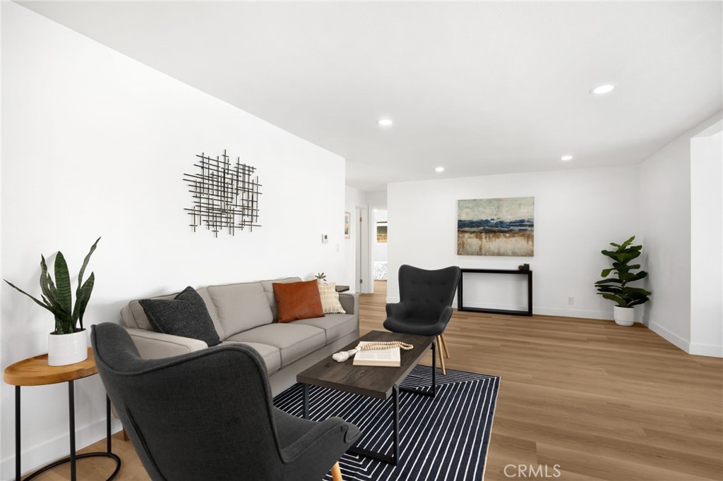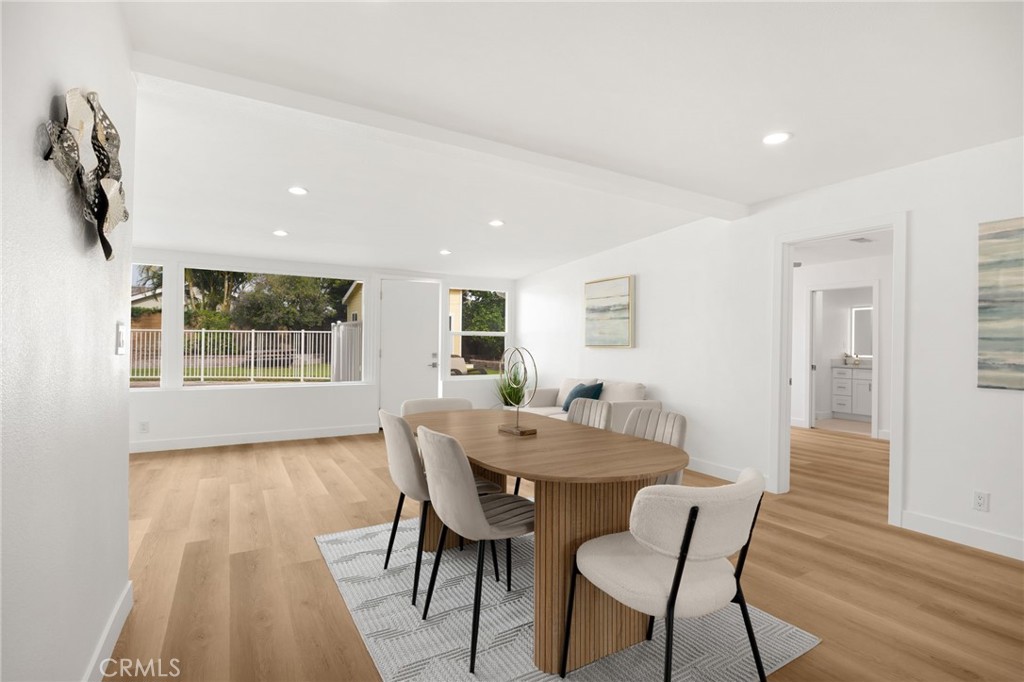 Rarely does a fully remodeled 5-bedroom home on a quarter acre with 2 primary suites, become available in this highly desirable Orange neighborhood near Villa Park, offering nearly 2,300 sq ft of single-level, step-free living ideal for multigenerational families. The spacious backyard includes a fenced pool, lawn, brick patio and 2 detached office pods. The open-concept layout is anchored by a stunning kitchen featuring a large island, breakfast bar, new stainless-steel appliances, custom subway-tile backsplash, quartz countertops, shaker cabinetry, extra storage cabinets, and a built-in desk with a window view, flowing into the living, dining, and family rooms that feature oversized windows and overlook a sparkling fenced pool. Upgrades include New: LVP flooring, windows, doors and moulding, fresh texture and paint, recessed lighting, ceiling fans, closet doors, fixtures, designer-tiled baths with frameless showers, and garage door. The generous lot offers a large front lawn with room to expand, a long driveway, back patio, lawn, raised garden, citrus trees, a pool equipment shed. Close to Old Towne Orange, Chapman University, the acclaimed Villa Park School District, and the upcoming redesigned Village at the Orange Mall, top shopping and dining, freeways.